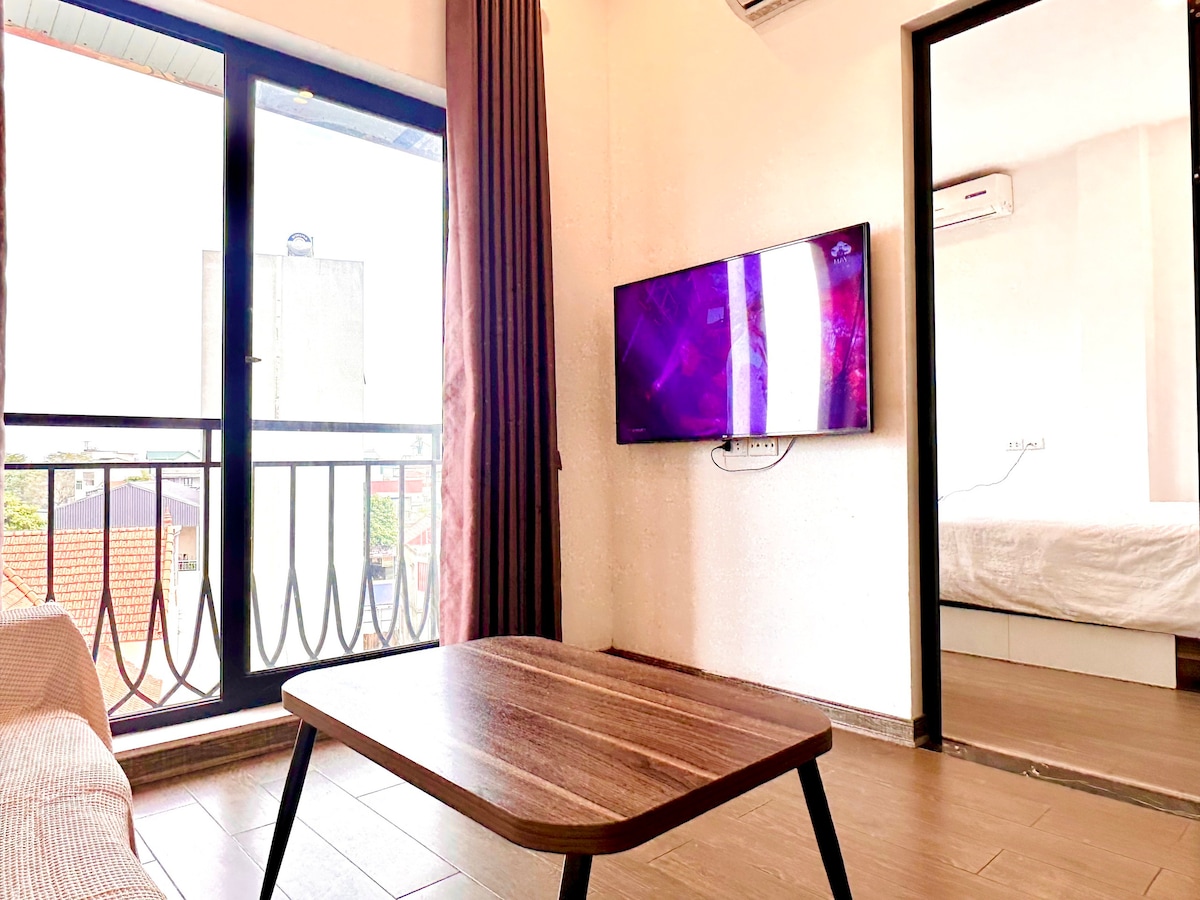 This beautiful apartment in Tay Ho is located on the 6th floor of our new building - Hanoi Housing 32. It has one bedroom, one bathroom, and an open livingroom-kitchen. It is nicely designed. Full modern furniture and equipment is provided. The wooden floor helps the apartment easy to clean. Moreover, the building's location is within walking distance to convenience stores, restaurants, shops, bars, pubs. Please note that there is no natural light or balcony at the apartment
