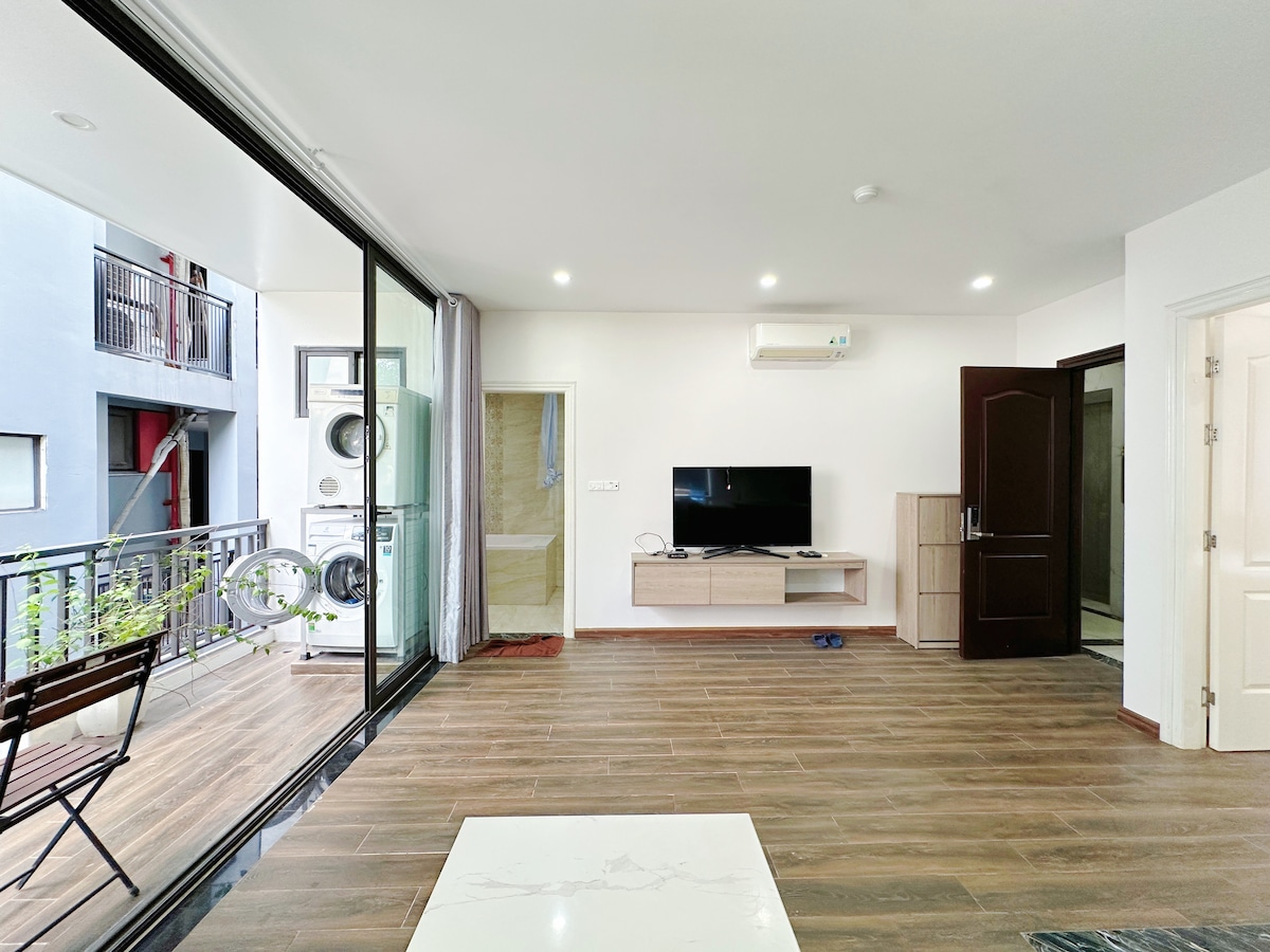 The apartment is fully equipped with amenities for guests: - A simple kitchen full with cooking , dining table and chairs. - Washing and Dryer Combine machine also included. - Queen side bed and separate bathroom for privacy. - Tv cable, internet wifi included. Perfect peaceful location to come back to after exploring busy Hanoi streets to rest and plan your next intentions.