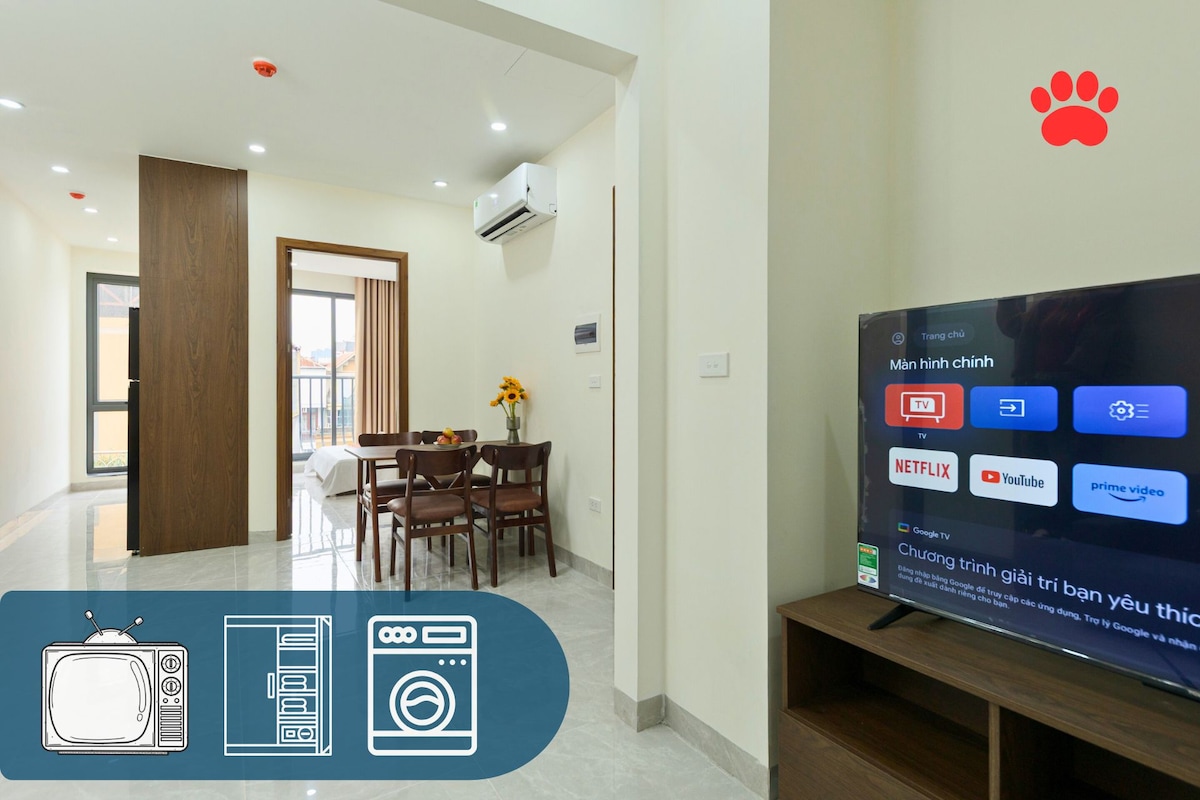A modern one-bedroom serviced apartment just minutes from West Lake, cafes, and daily conveniences. The apartment features a separate bedroom (FIRM MATTRESS), bright living area, Smart TV with Netflix & YouTube, high-speed Wi-Fi, and a fully equipped kitchen with washing machine. Pet-friendly and ideal for both short and long-term stays, offering comfort, privacy and easy access to Hanoi’s key areas.