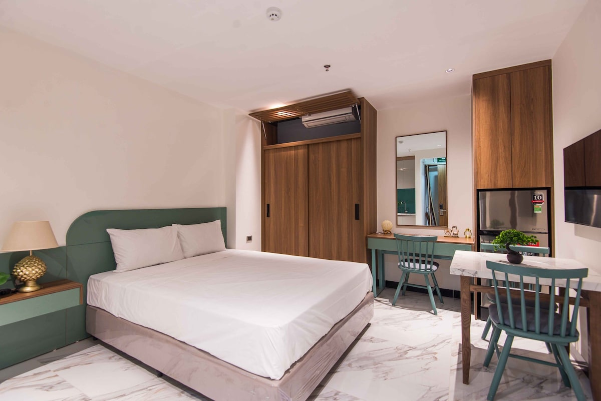Căn studio tại 90 Đường Láng là không gian hiện đại, ấm áp, lý tưởng cho các cặp đôi hoặc du khách ngắn ngày. Vị trí trung tâm, gần Royal City, kết nối thuận tiện khắp Hà Nội. Căn hộ trang bị nội thất thông minh, giường lớn, bếp tiện nghi, ánh sáng dịu và thiết kế tối giản sang trọng. Khách lưu trú được hưởng trọn tiện ích: check-in tự động, TV thông minh, máy giặt – sấy, wifi tốc độ cao, mang đến trải nghiệm thoải mái và riêng tư.
