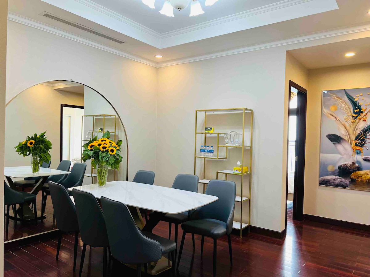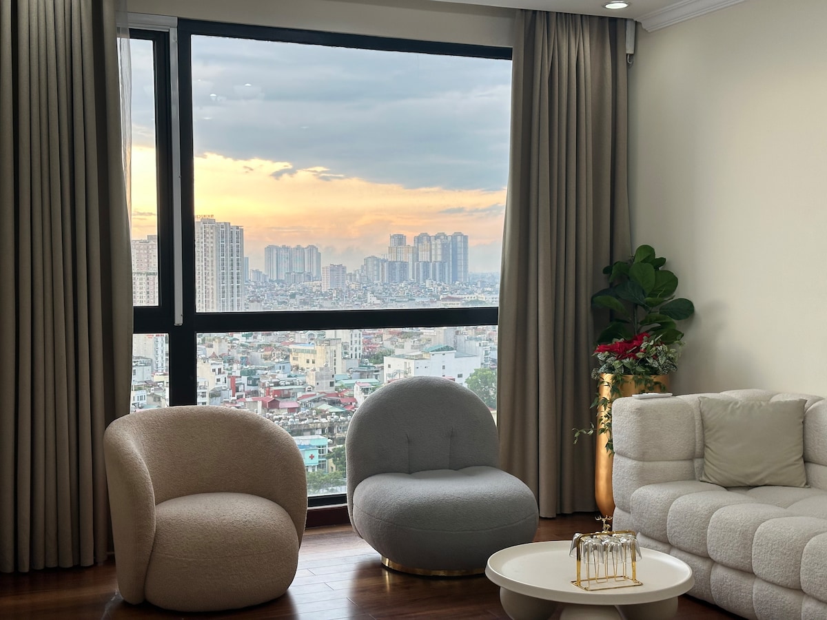 Đây là căn hộ 3 phòng ngủ với tầm nhìn ra thành phố, được trang bị đầy đủ nội thất, thiết bị hiện đại, phù hợp với gia đình hoặc nhóm bạn bè từ 4 đến 8 người thuộc khu đô thị Vinhomes Royal City, 72A Nguyễn Trãi, Thanh Xuân, Hà Nội, Việt Nam (This is a 3 bedroom apartment with spacious city view, fully equipped with modern and high-class furniture, suitable for families or groups of 4 to 8 people, located in Vinhomes Royal city, 72A Nguyen Trai st., Thanh Xuan dist., Hanoi, Vietnam)