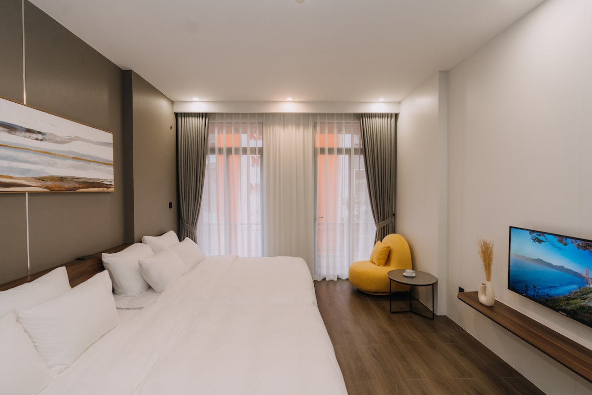 The name of the building is "Le Capitole" and is located in the center of Hanoi City with supermarkets and eateries within walking distance and very close to the building. ★ Located at 8th floor - Le Capitole Building - 27 Thai Thinh, Dong Da district. Building with elevator ★ FREE CLEANING EVERY 3 DAYS ★ 24/7 Automatic CHECK IN! ★ FREE PICKUP (4-7 SEATS) from 4 NIGHTS ★ FREE Netflix and washing machine ★ Offer a city guidebook for navitation ★ Numerous attractions are nearby