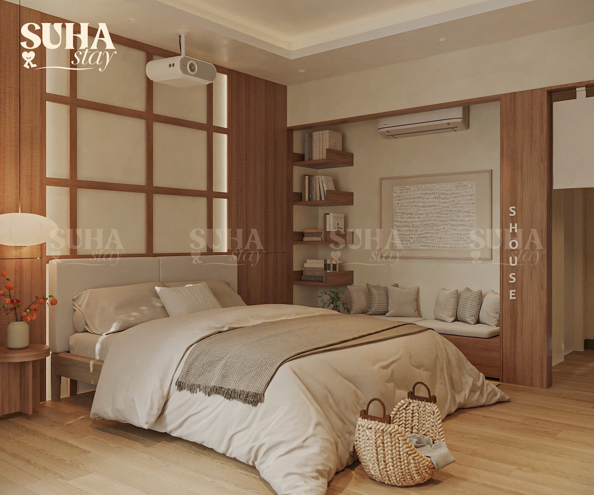 À La Casa – Sống chậm, nghỉ đẹp, ở có gu Tại À La Casa, mỗi phòng đều được thiết kế như một căn hộ nhỏ ấm cúng, với bếp riêng tiện nghi, cửa sổ lớn tràn ánh sáng cùng view panorama đầy thi vị. Bạn có thể thư giãn buổi tối với máy chiếu 113 inch và rất nhiều board games, ps5 cùng quầy snacks hottrend - tối đa trải nghiệm điện ảnh tại không gian riêng. Chúng mình mong được chào đón bạn đến một nơi thật yên tĩnh, thoải mái và tràn đầy cảm hứng – như chính ngôi nhà thứ hai giữa lòng thành phố xô bồ.