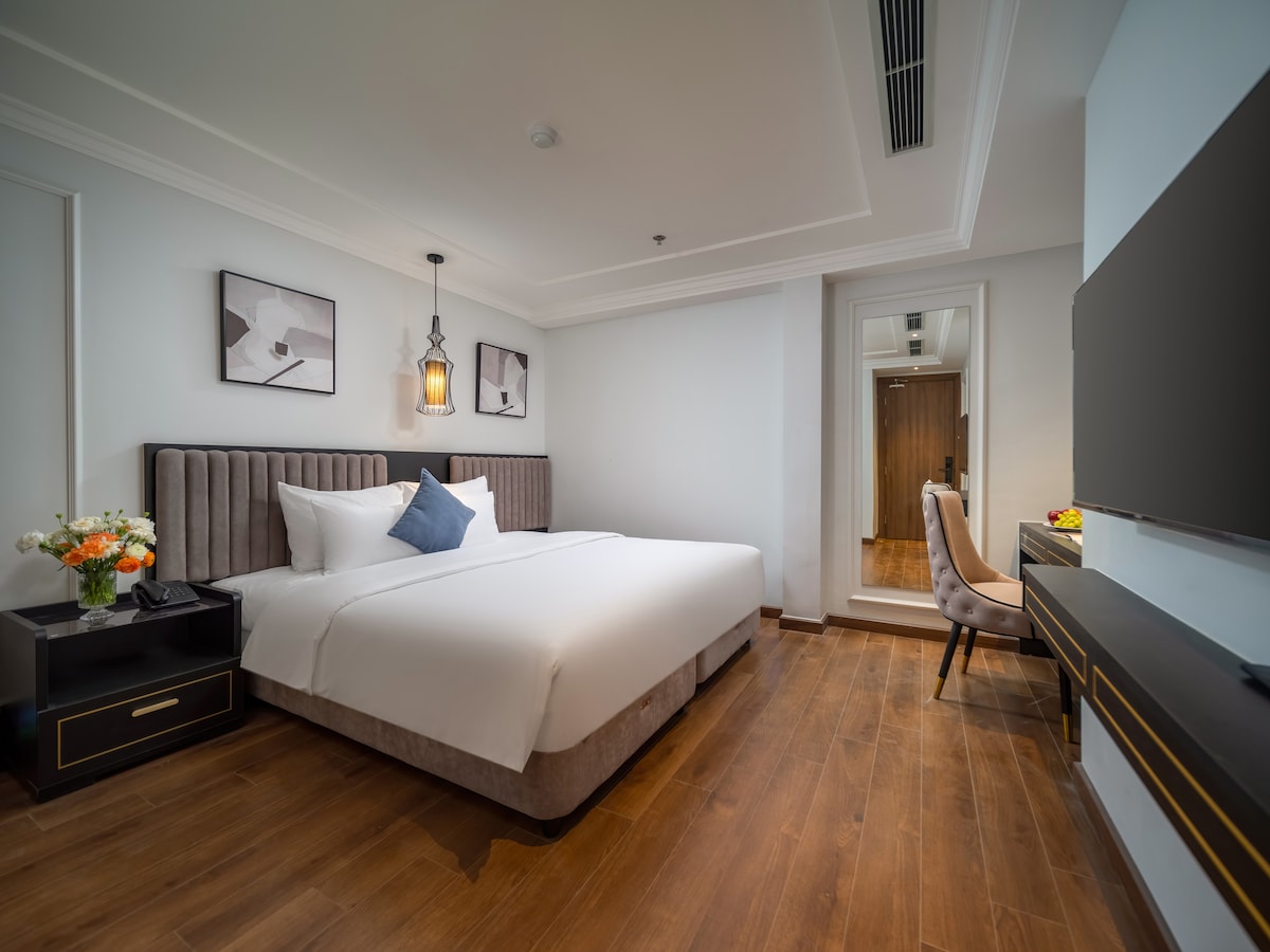 Settle into ease and enjoy a homelike atmosphere in this clean, contemporary, and beautifully furnished getaway in central Hanoi. The space is equipped with practical comforts, including air conditioning, a TV, a relaxing sitting area, daily upkeep, and dedicated non-smoking rooms. Added safety features such as fire equipment and CCTV monitoring provide extra peace of mind throughout your stay.