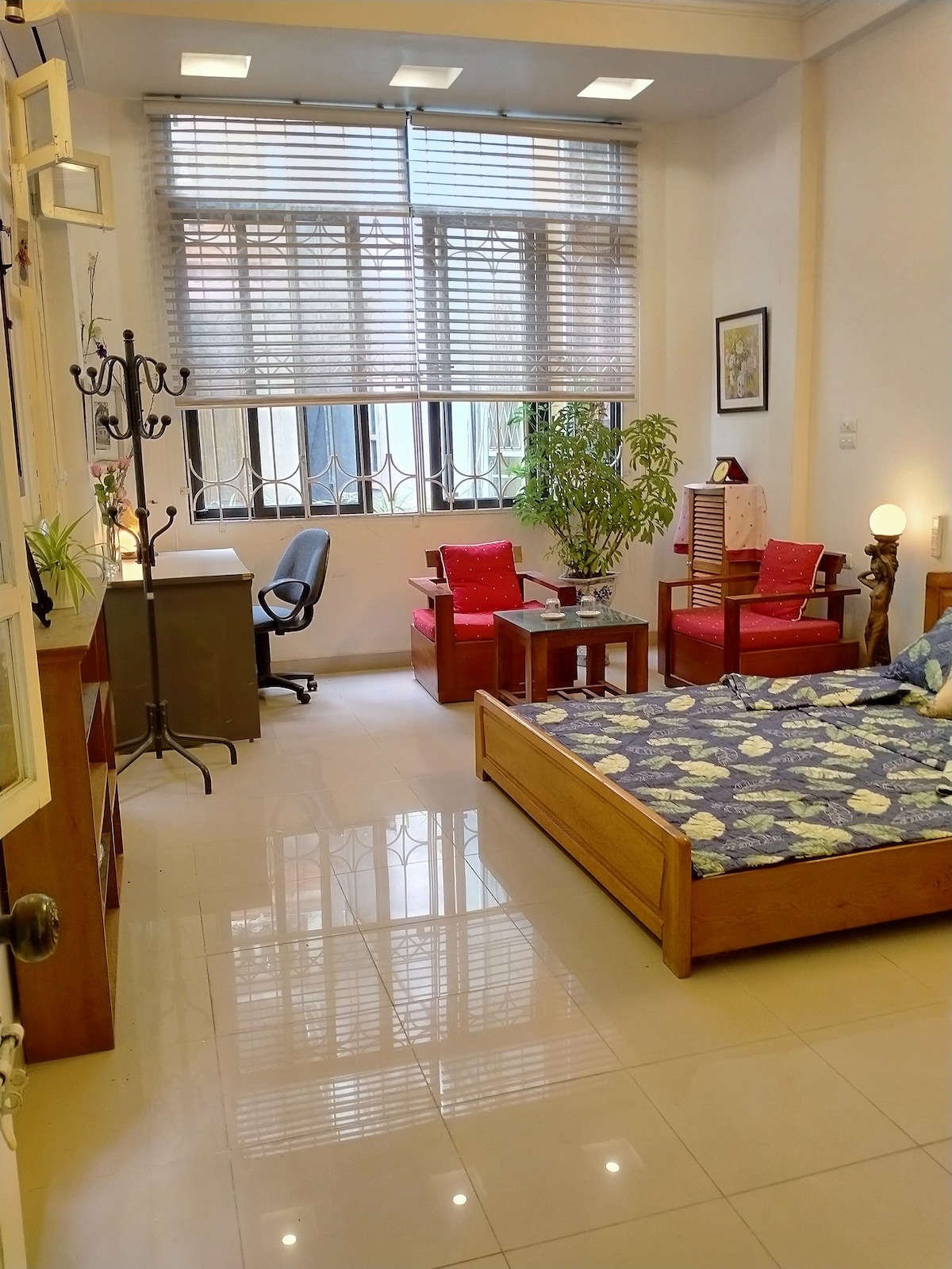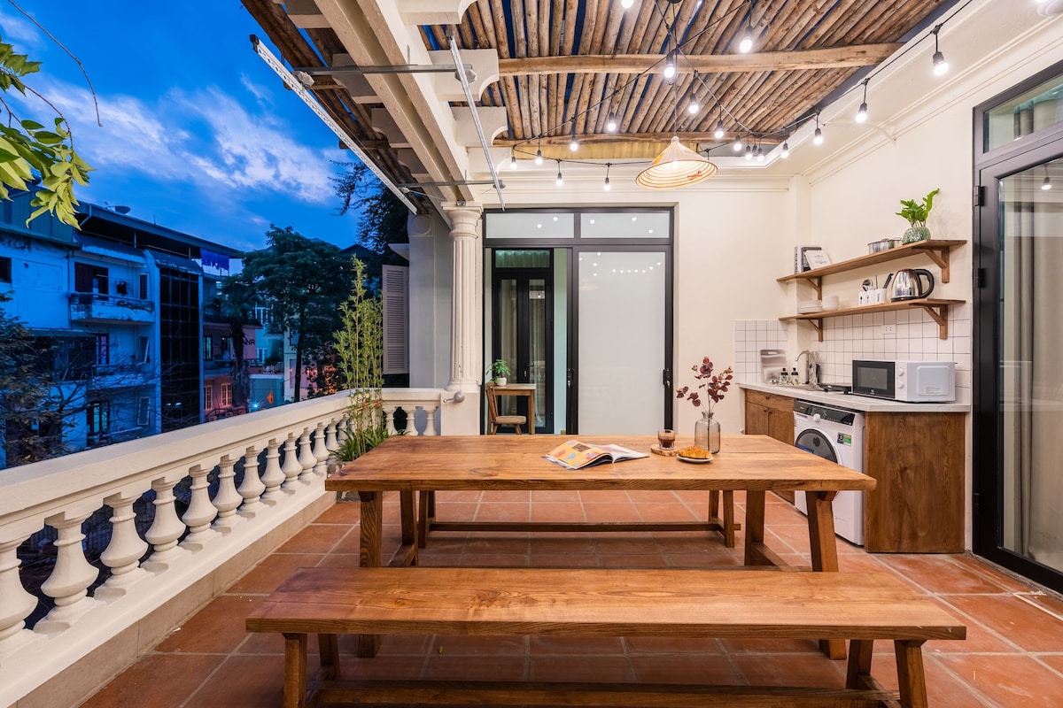 Tucked in a quiet, leafy courtyard, this homestay is in the heart of Hanoi, just less than 1km from Hanoi Station and the Temple of Literature, 2 km from Hoàn Kiếm Lake. Part of a four-storey local family home, it’s near markets, shops, eateries, and laundry services. Enjoy a fully private space with a cosy living room, a small kitchen, a bathroom with washer downstairs, and a bright bedroom upstairs. Fully furnished, with a warm, caring host.