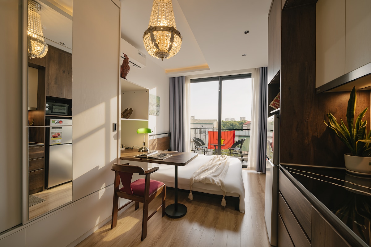 Wake up to Hanoi’s skyline from your cozy studio in Lancaster Tower, right at the heart of Ba Dinh District. Enjoy your morning coffee by the window, take a dip in the pool (4$/person) Perfect for solo travelers, couples, or small families (up to 4 guests) who love a modern stay with hotel-standard facilities and local vibes.