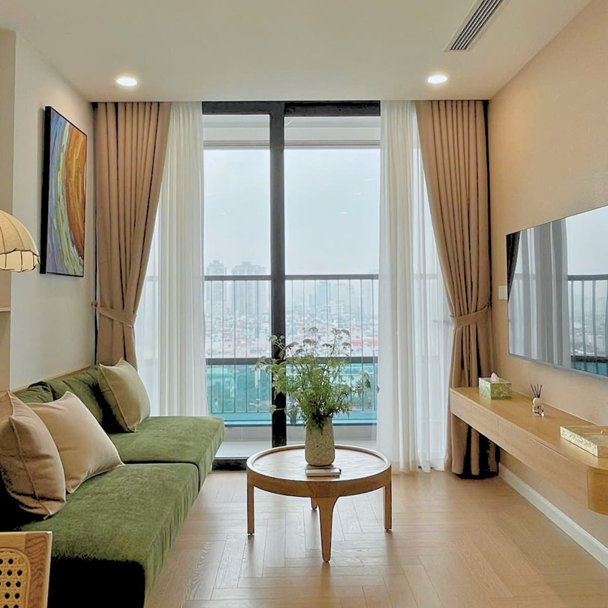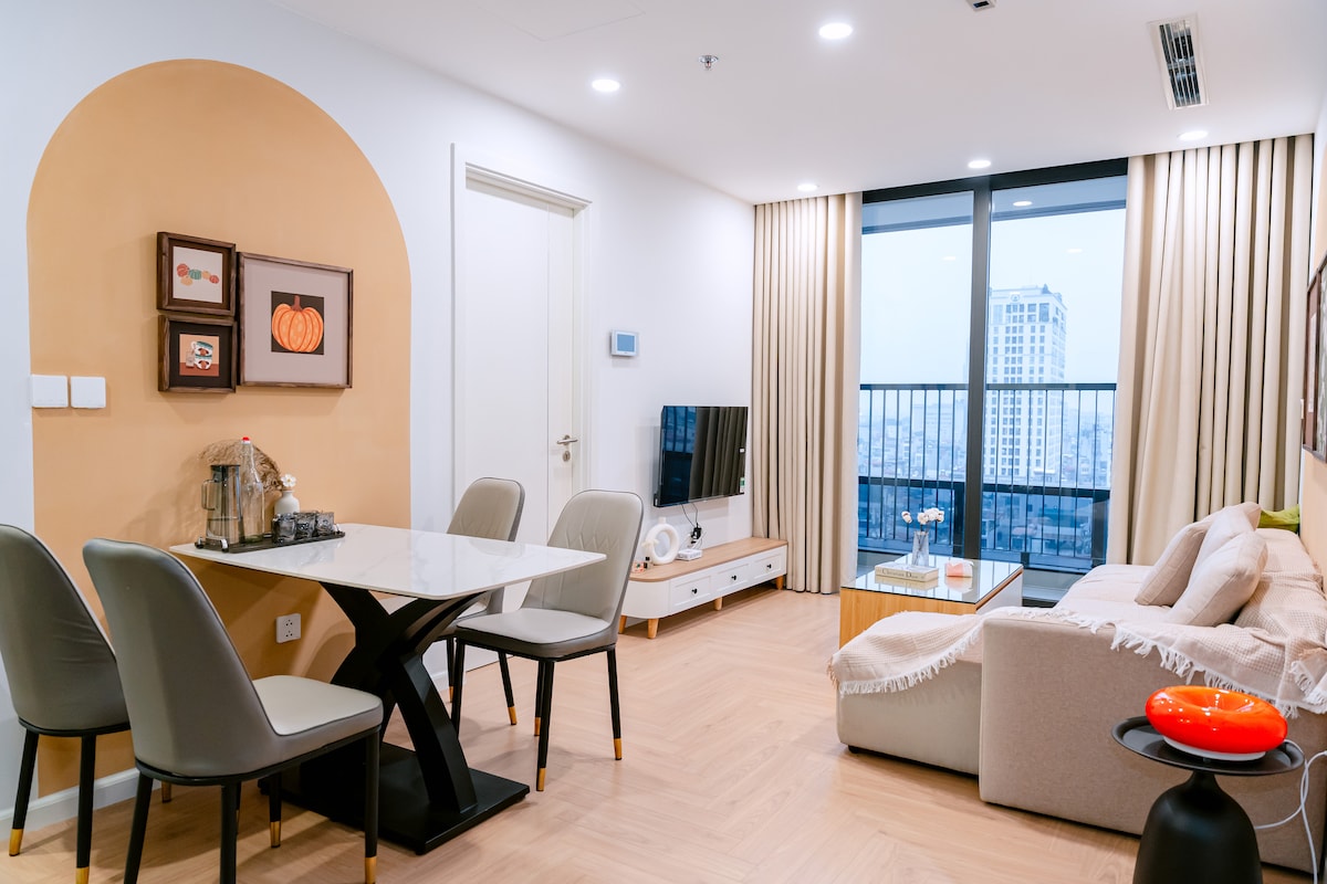 Stay 3 Nights free 1 way Airport. Contact us directly for transport arrangements. Serene, light-filled space with panoramic city views. Captures sweeping city skyline views that inspire focus and reflection—perfect for the ambitious professional seeking a stylish, uncluttered haven amid the urban pulse. This thoughtfully designed two-bedroom retreat feels like a private sanctuary, blending modern Hanoi energy with timeless calm. Your elevated base for meaningful work and quiet recharge.