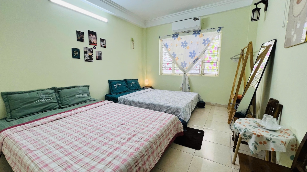 走进 My Homes,您会立即感受到温暖、安静与充足的自然光。房子位于河内中心的昊南街,是著名的乐器一条街,靠近 Cát Linh 轻轨站、美食街、咖啡馆、ATM 和银行。6 层楼梯宽敞易走。民宿有 4 间独立卫浴卧室、6 张舒适大床、大厨房和小厨房、公共客厅、放松的露台和洗衣晾晒区。提供免费 Wi-Fi、免费摩托车使用,汽车可停在附近。非常适合旅行、出差或长住,让您像在家一样舒适。🏡