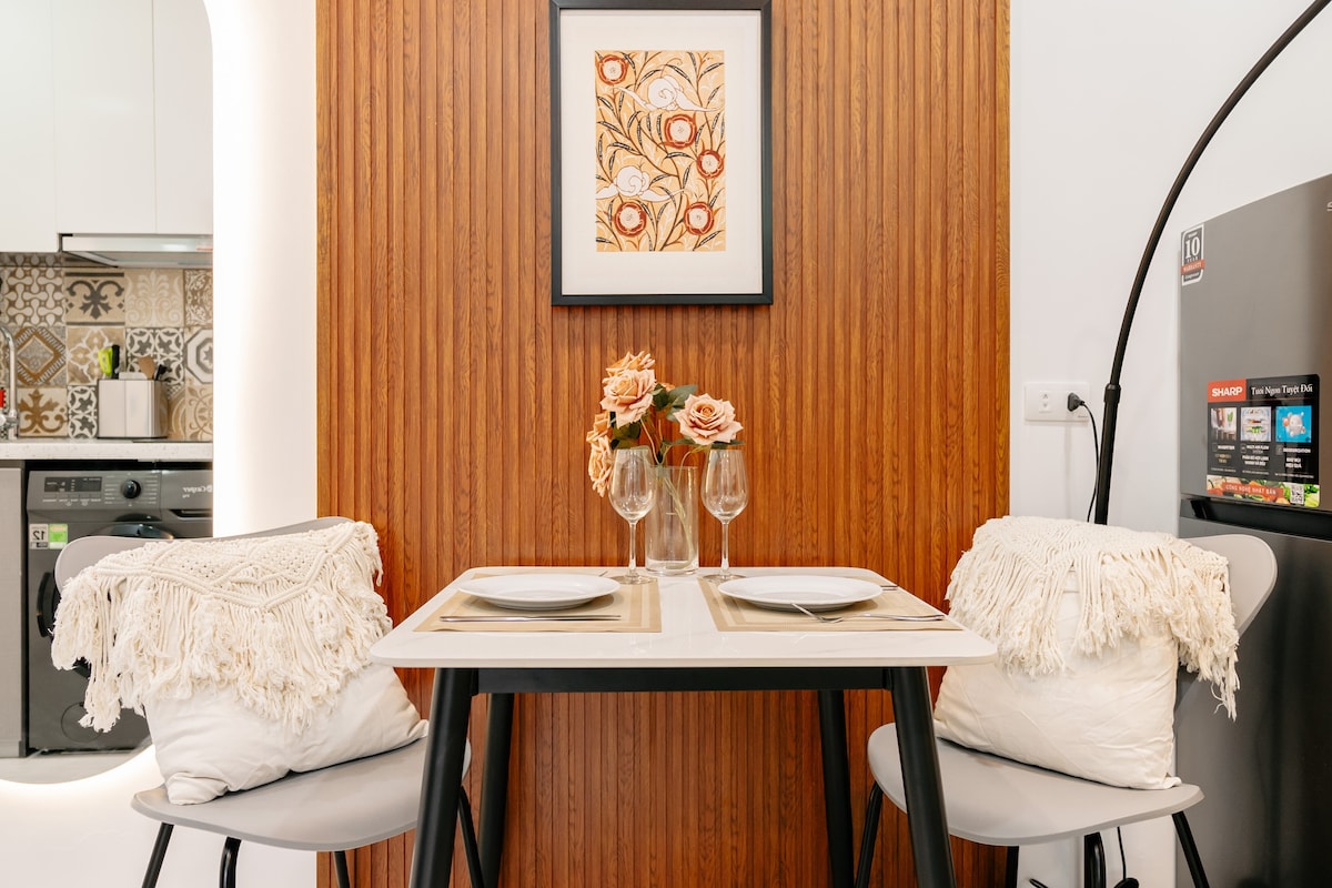 Nestled in an old communal building in Lang Ha, stepping up 7 staircases reveals a cozy home. The house is fully equipped with a spacious living area, bright living room, kitchen, balcony and free laundry. It's a perfect place for short trips or business stays. "Staircase Hideout" unfolds the dialogue between the old and the new, a microcosm on the Vietnamese way of living. Welcome to experience Hanoi from a different perspective, a modernized street that still lives the essence of folk culture!