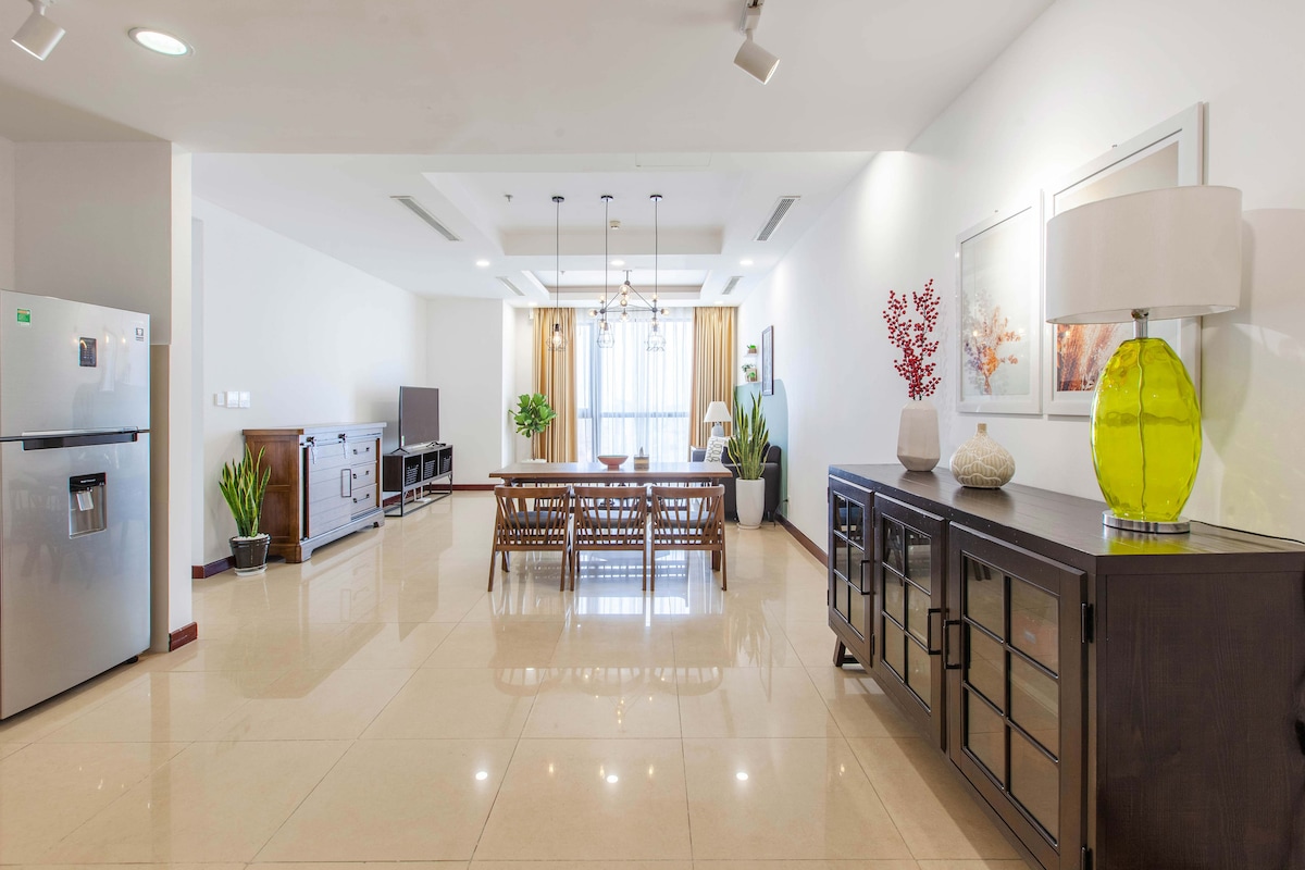 Chào mừng bạn đến với căn hộ 2 phòng ngủ tại Royal City, nơi mang đến không gian sống tiện nghi và dễ chịu với tầm nhìn đẹp ra quảng trường trung tâm và bể bơi, chỉ cách Vincom Mega Mall Royal City vài bước chân. Căn hộ được trang bị đầy đủ nội thất và thiết bị hiện đại, thiết kế tinh tế, gọn gàng, tạo cảm giác thoải mái và ấm cúng như ở nhà. Đây là lựa chọn lý tưởng cho lưu trú ngắn ngày hoặc dài ngày, dù bạn đi du lịch, công tác hay nghỉ ngơi cùng gia đình.