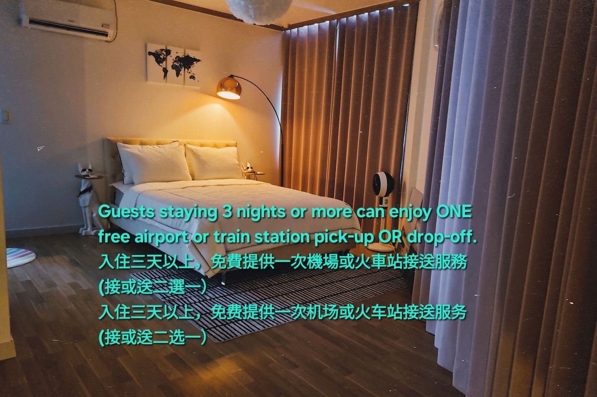 《西门站》 《汉层独核》 电梯 # 距离前浦咖啡街 10 分钟,西门站 2 分钟 # 3 张双人床,1 张气垫 # 无人行李寄存柜