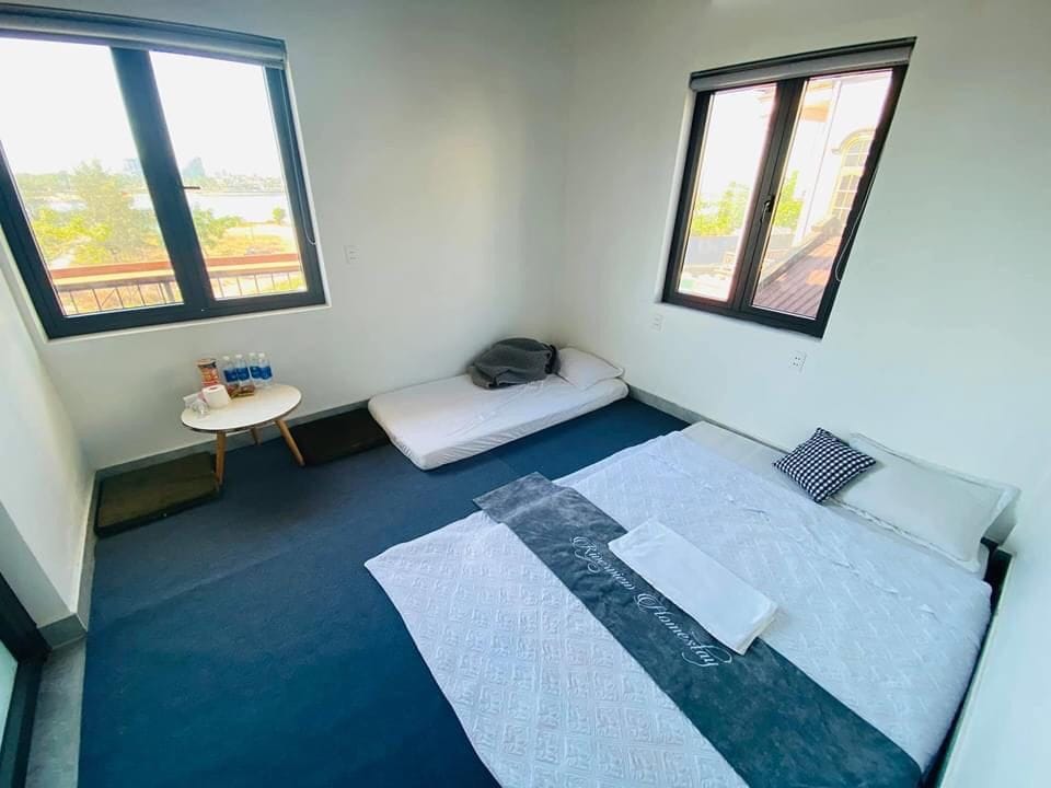 🏡 Thông tin homestay: ▪Nhà nguyên căn 3 phòng ngủ: 1 phòng có gác lửng, giường 1m8x2m 2 phòng giường 1m6x2m ▪Phòng khách xinh xắn, bếp đầy đủ đồ, 6 nhà vệ sinh sạch sẽ ▪Ban công rộng rãi, view biển, gió thổi mát rười rượi luôn nha 🍃 🍢 Tiện ích: ▪Bếp sân thượng + khu BBQ siêu chill, tổ chức tiệc thoải mái 🎉 ▪Đủ đồ dùng tiện nghi: tủ lạnh, máy sấy, bình siêu tốc, wifi mạnh mẽ 💨 ▪Xung quanh có đủ: chợ, công viên, quán ăn, chè, nhà hàng, xe điện… chỉ trong bán kính 200m!