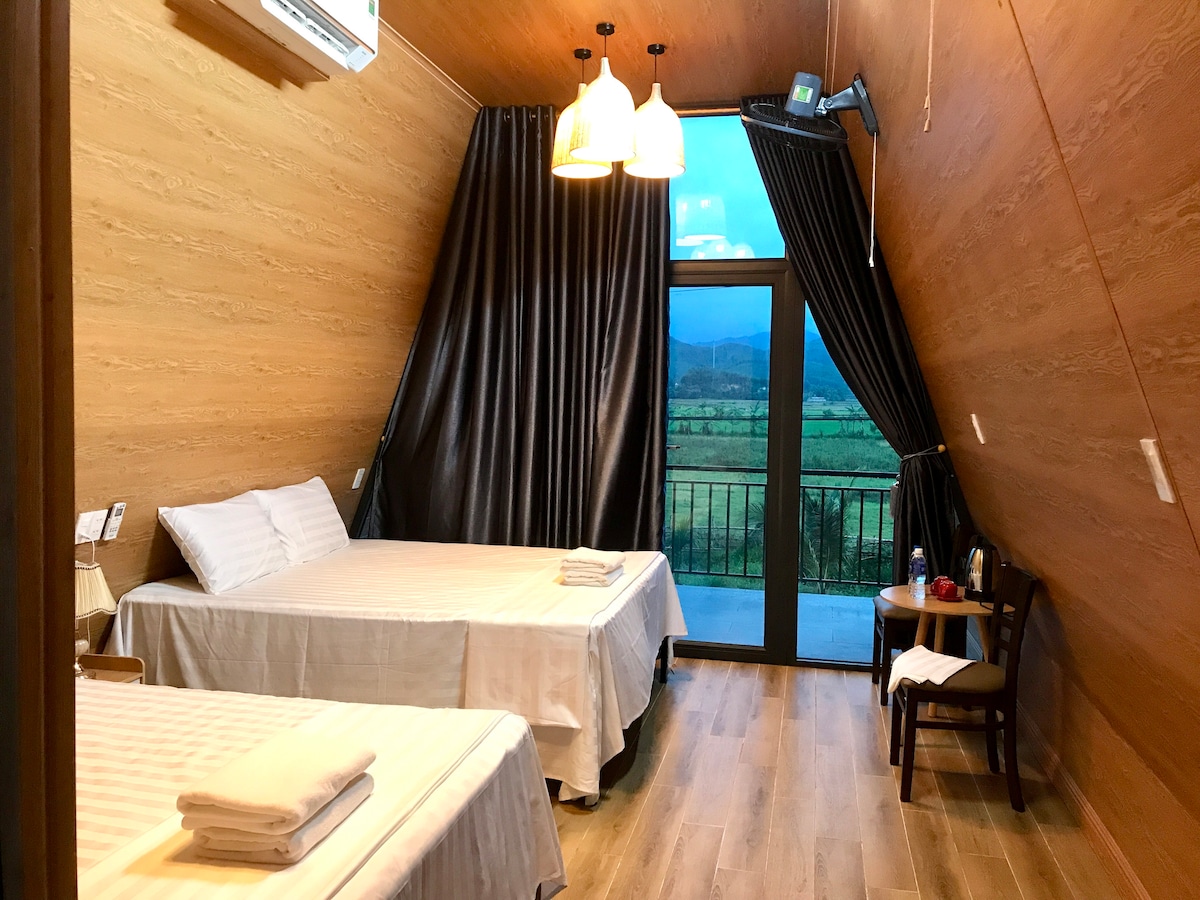 Jungle Boss Homestay located in the village with surrounding mountains, rice fields & organic farm to help people to fully enjoy the authentic Vietnam rural atmosphere. Our spacious can accommodate to 4 people, is well equipped with a double bed & a large bunk bed, ensuite shower with hot/cold water, A-C, mosquito nets, air-conditioner, free (wifi, laundry, locally sourced drinking water, bicycle) to explore beautiful villages/ landscapes surrounding, swimming pool & other amenities in room.