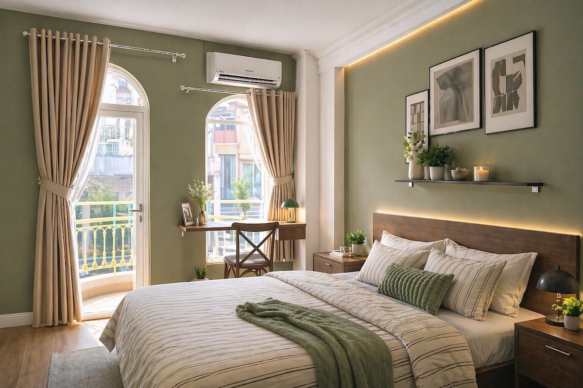A unique 60sqm studio hidden in an alley in the heart of Saigon, offering both privacy and convenience. Located on the 2nd floor of a townhouse, right above cozy BeanThere Café on the ground floor, it’s perfect for guests who love stylish living and great coffee just steps away. Only minutes from famous attractions, shopping malls & nightlife. Each guest is provided with one meal (1 food & drink) at café downstairs/each night booked. Free housekeeping for stays over 4 nights with 1-day notice.