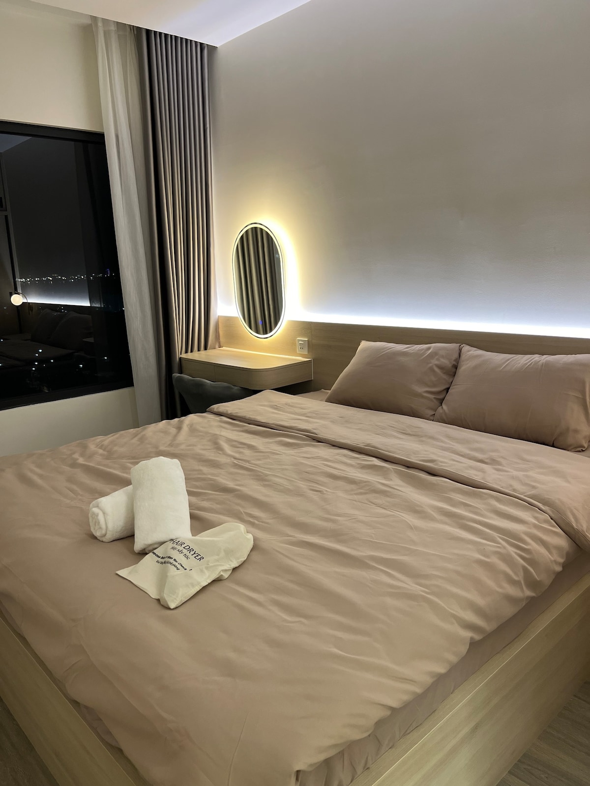 - Located at Master Centre Point, Vinhomes Grand Park, near Vincom Mega Mall and Winwonders Water Park and Theme park. - The apartment is clean and beautiful, with comfortable bedding sets. - Strong WiFi for both work and entertainment. - Full and Modern amenities: big refrigerator, induction stove, microwave, washing machine, smart 65-inch TV, kettle, rice-cooker, hair dryer, iron, umbrella, Lavie mineral water, seasonings... - Fitness/gym center and swimming pool are included for guests.