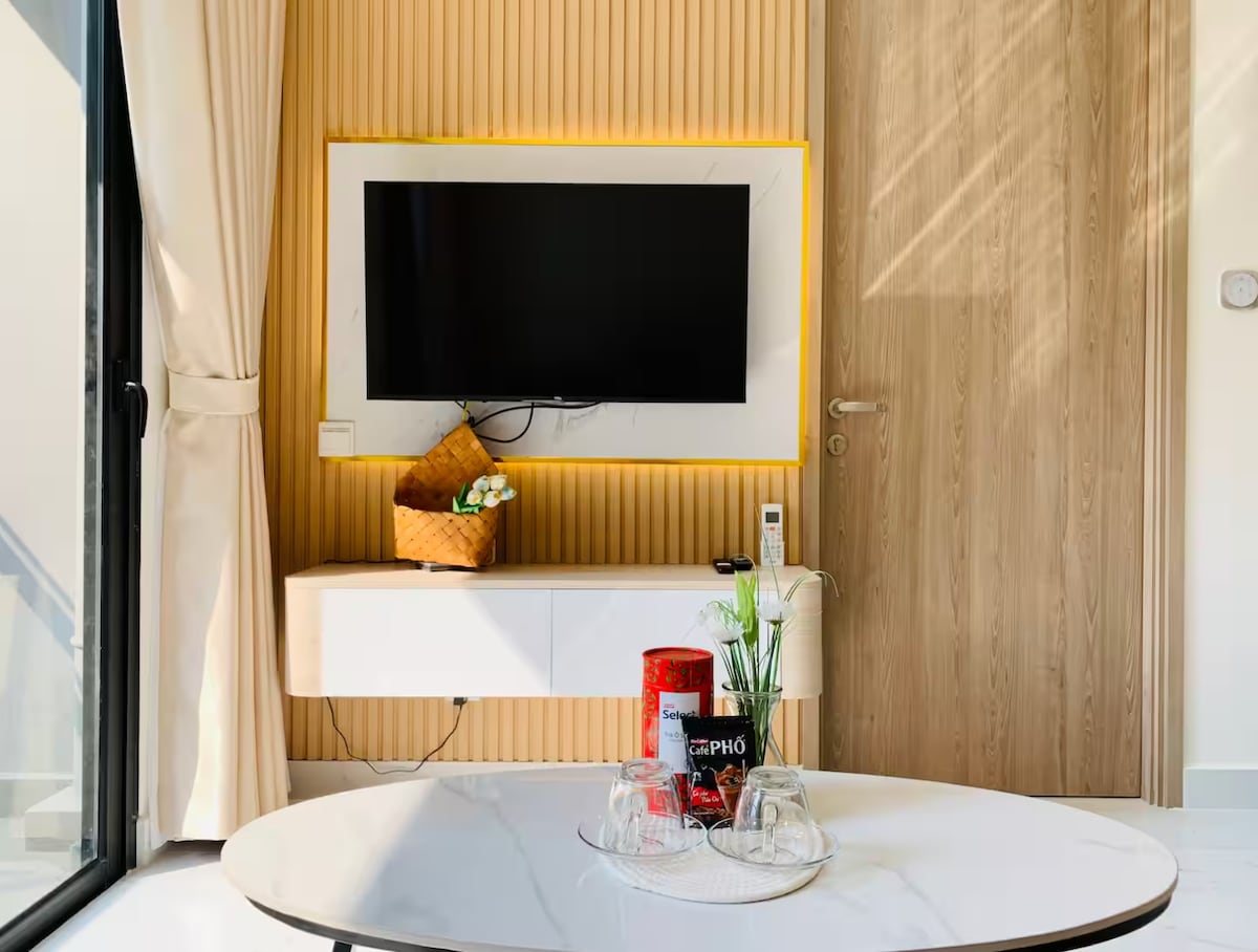 Discover a luxurious private retreat in the heart of the city. Just 3 minutes from Rach Chiec MRT, this 45m² smart home offers privacy, comfort, and style. Enjoy high-end amenities: app-controlled lighting, 85” & 55” 4K TVs with Netflix & Apple TV, immersive Apple HomePod sound, customizable mood lighting, and a 2-meter spa-style soaking tub. Perfect for couples, business travelers, and small families.