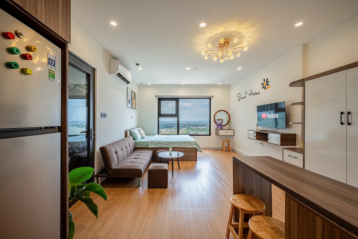 Charming Studio/1BR with Japanese Flair in Vinhomes Grand Park (BE1) Welcome to your stylish retreat in Vinhomes Grand Park ! * Smart TV * Free Washer * High-speed Free Wi-Fi * Fully Equipped Kitchen * 24-hour Security [All guests are required to send a copy of their passport at check-in.]
