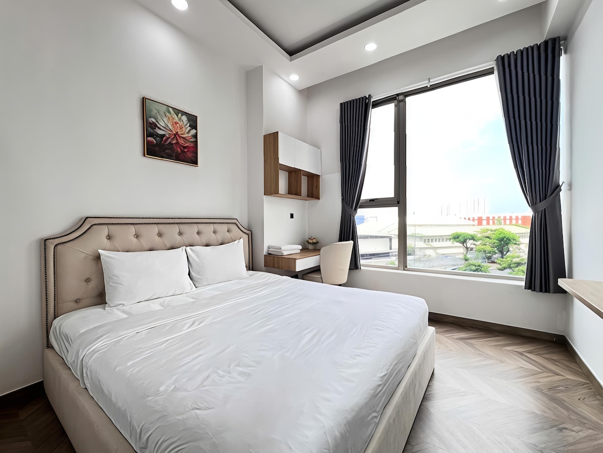 River Gate is luxury accommodation in Saigon, located in a prime location on a beautiful riverside boulevard in the city center (Just cross the bridge and you'll be in Dist 1). Lovely, cozy and quiet studio of 28 m2, on a high floor with great views and a comfortable double bed (200 cm), modern bathroom and fully equipped kitchen. This apartment is suitable for couples, solo travelers and small families.