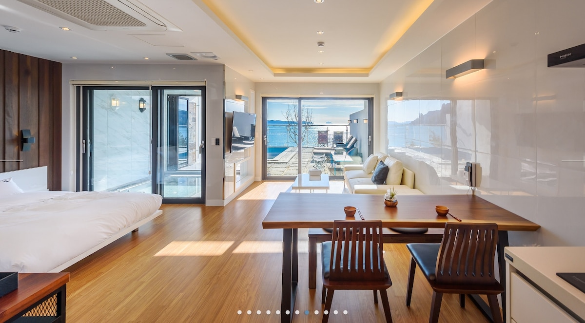 ๋ญ๋ง์ ์ธ ๋ฐ๋ค๊ฐ ๋ณด์ด๋ ๋ฌ์ฝคํ ํด์๊ณต๊ฐ