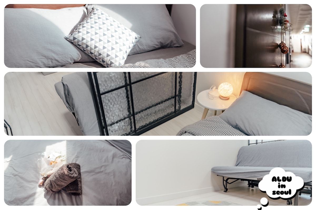 Fully private and independent studio (34㎡) with a queen-sized bed Private bathroom, in-room washing machine, and kitchen; rooftop dryer available Located in a 6-story building with elevator access 7-minute walk to Cheongnyangni Station (KTX/ITX and Metro Line 1) Close to a convenience store and traditional market Easy access to public transportation and nearby universities On-site manager ensures a clean and well-maintained environment Ideal for exchange students, interns, and long-term stays