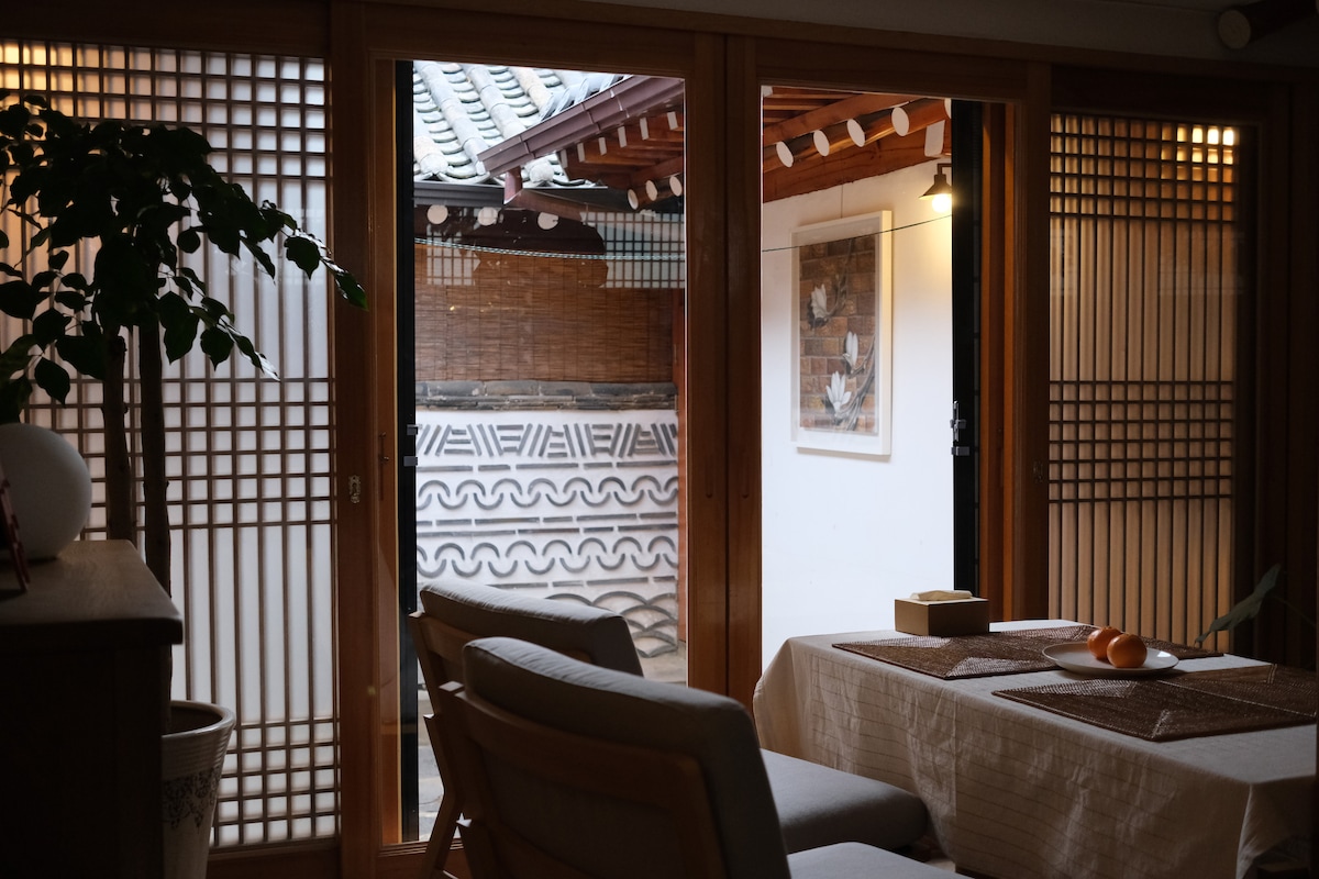 Origin is a traditional hanok house located on the stone wall of Changdeokgung Palace, a UNESCO cultural heritage. Located in the 2nd view of Bukchon, this hanok yard is filled with old trees from Changdeokgung Palace. It is located in a quiet place where you can hear the chirping of birds. There is no inconvenience at all to stay. Bukchon Hanok Village, Insa-dong, Ikseon-dong, and the National Museum of Modern and Contemporary Art are all within a 10-minute walk.