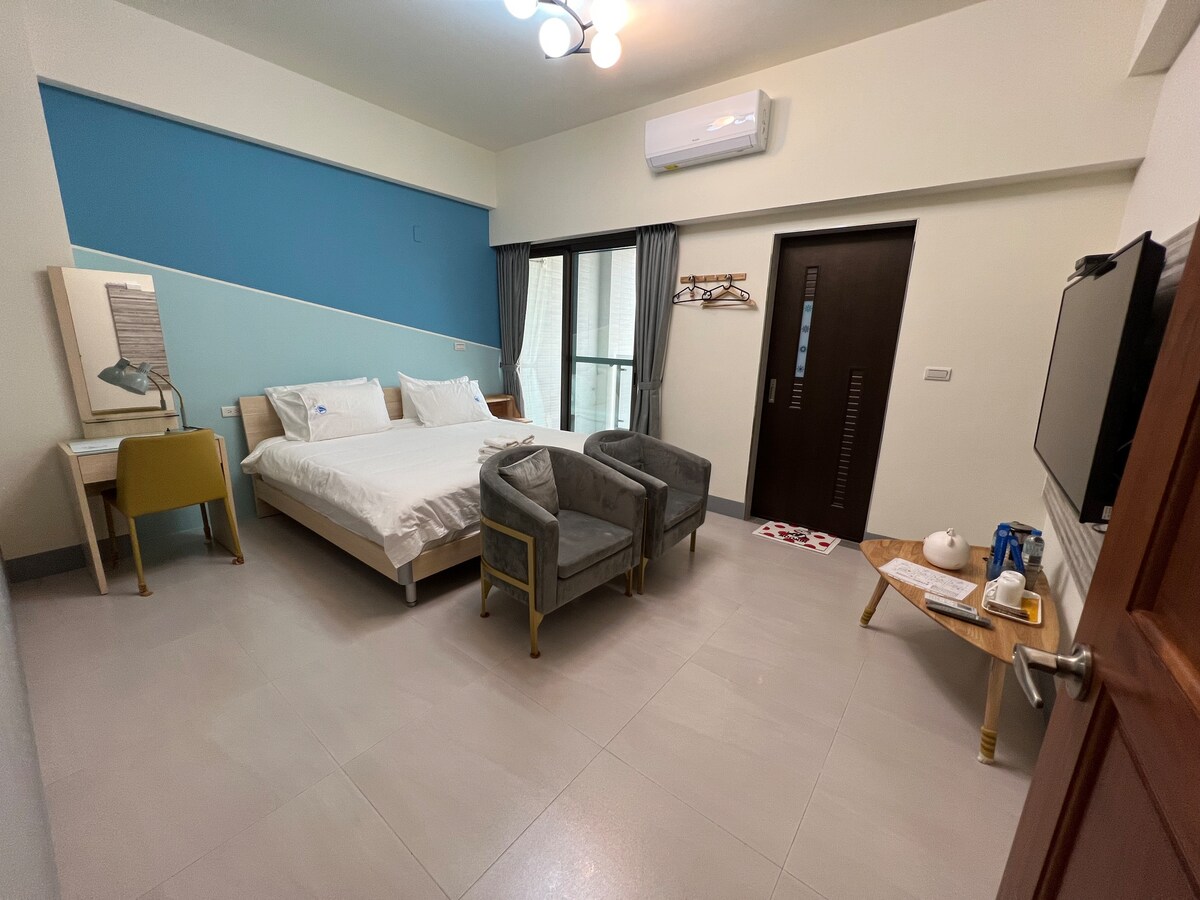 位於大鵬灣海邊風景優美環境清幽,可以看到大鵬灣的海景也可以看到大武山的山景每間房間都有落地門和陽台採光通風佳可以看到日出房間空間很大都備有沙發床墊枕頭都是以五星級飯店為目標是一個可以讓人放鬆的空間這個時尚住處有許多迷人的細節。