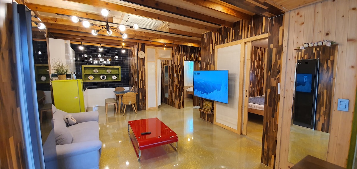 Built in 1866, this authentic Jeju stone house (Hanok style) has been renovated with all modern comfort. Nestled among Gimnyeong alleys, situated on Olle trail no. 20, only 3 mn drive from Gimnyeong beach, it is the perfect place for you to enjoy the authentic island lifestyle. This healing retreat gives you exclusive access to a private house (Ankkeori, courtyard house), and exclusive outdoor hot tub. You will have access to a garden and separate kitchen. Free street parking. Roberta/Youngsoo