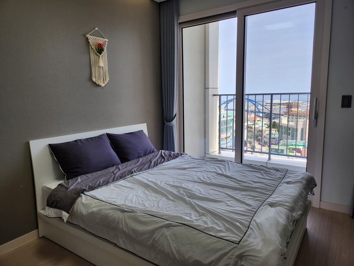 1. Wide Ocean View from the 17th floor balcony - The Sunrise(morning), light house beam(night) 2. Clean & Modern room - Just built in 2022, fully equipped home appliance. Lundry & Drying machine etc. 3. Good location for Travel & Rest - Just near to Bus stop to MT Seorak - Walking distance to beach, Museum X, Restaurant & Bar, Cafe, local Ports, Sokcho Central Market etc. 4. Free parking area inside the building.