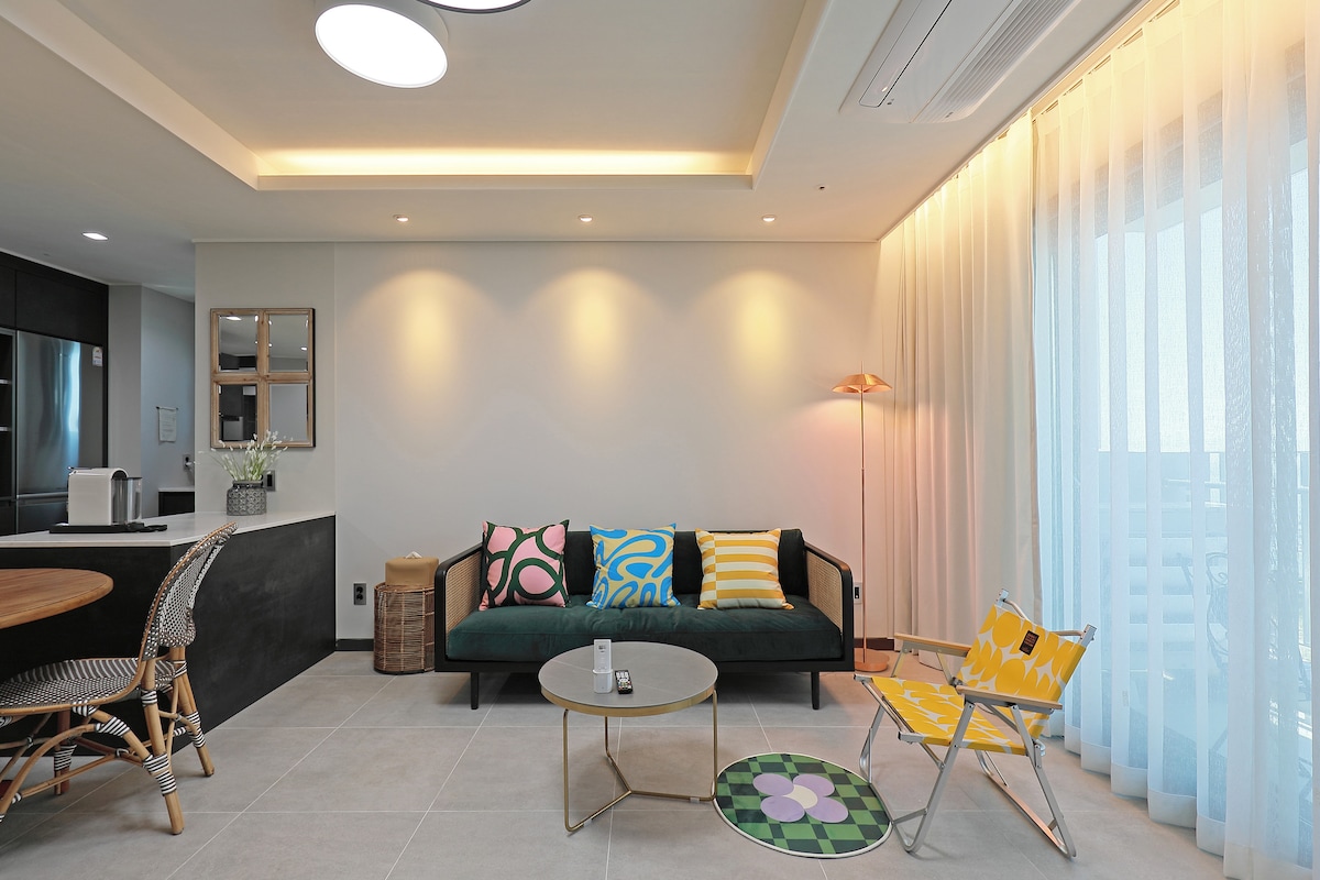 거실 창문 너머로 부산항대교 오션뷰가 정면으로 펼쳐지는 레지던스. 아늑하고 세련된 분위기 속에서 가족·친구·연인 누구나 편안하게 머물 수 있습니다. ▪️시간 제약 없는 모바일 셀프 체크인 ▪️KTX,SRT 부산역 연결통로 도보 5분 ▪️무료주차/주차장 내 전기차 충전소 ▪️객실별 제어 최적 냉/난방 시스템 ▪️남포동,서면 등 편리한 원도심 접근성 ▪️해운대,광안리 이동편의 ▫️LG 시스템 에어컨 ▫️LG 스팀 의류관리기 ▫️삼성 냉장고 ▫️삼성 세탁기 ▫️삼성 건조기 ▫️삼성 식기세척기 ▫️삼성 오븐레인지 ▫️식기+조리도구 (조미료X) ▫️스마트 65인치 TV(OTT-본인계정) ▫️고속 와이파이