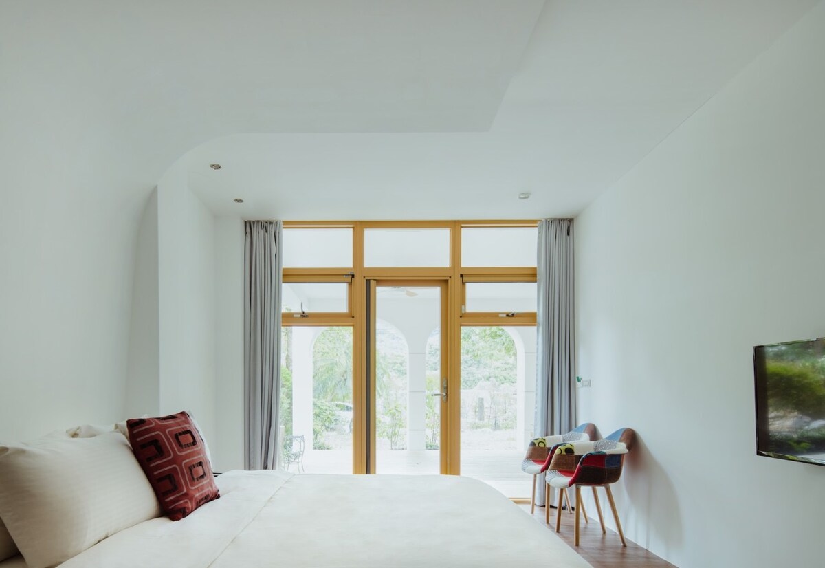 房間採光良好,設有獨立衛浴與舒適雙人床,備有冷氣等基本設備,地點便利,步行1分鐘即可到梅花湖,適合放鬆入住。
