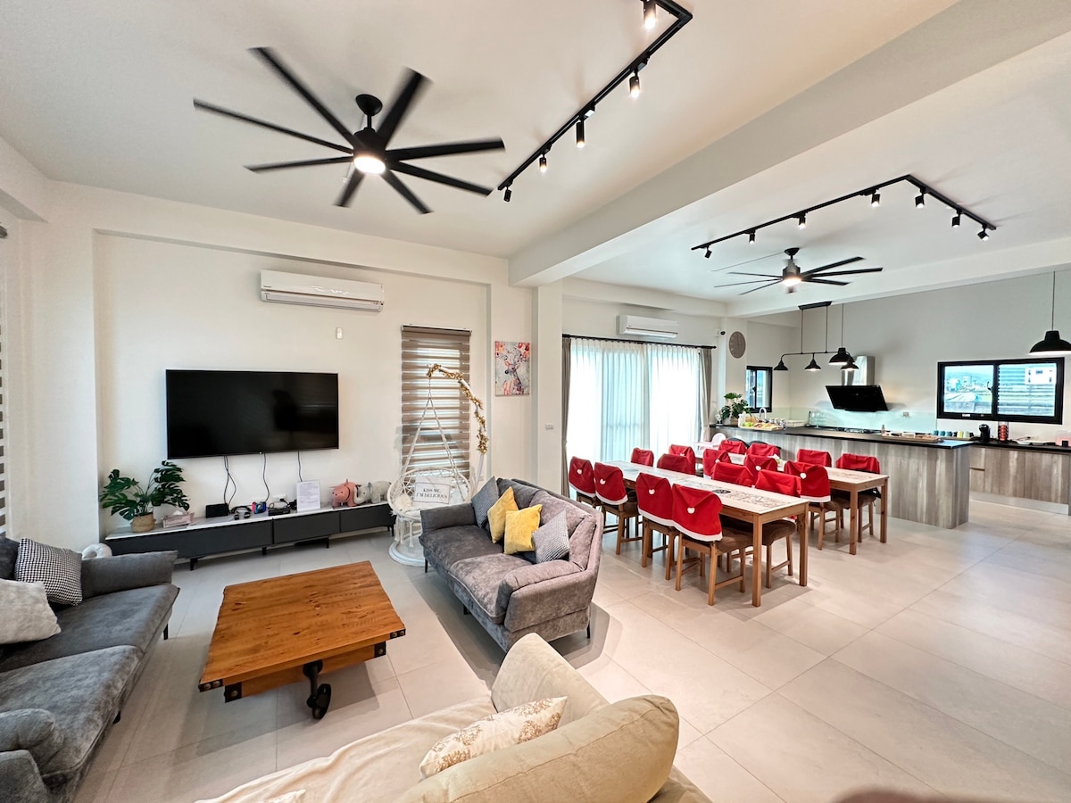 ‼️如需訂房以下很重要請仔細閱讀完畢‼️ ✿提供設施✿ ✔️別墅本身已含一車庫可免費停車。 ✔️三台65吋智慧型電視(可觀看Netflix、Youtube⋯等) Switch(可供三人玩,內建遊戲僅兩款如有需要可以自行攜帶遊戲片))、LG洗脫烘、HITACHI冰箱、吊隱式除濕機、冷暖氣機、烘碗機、廚下式冷&熱飲水機可直接使用、烤箱、電鍋、小米電火鍋、手持蒸氣熨斗、嬰兒澡盆、嬰兒餐桌、新貝樂嬰兒消毒鍋(含溫奶器)、滅火器、醫藥箱。 ✔免費WiFi升級(上傳/下載都是1G頻寬)讓您享受快速的網路體驗👍🏻 ✔️免費提供UCC三合一咖啡包及鐵觀音烏龍茶包 ✔️別墅內有提供DIDI嬰兒圍欄+專屬地墊 ➡️此僅提供給有嬰幼兒需求的旅客 所以平常會收起來;如有需要應於訂房時提前告知 我們會幫您鋪地墊及組裝👶🏻 ✔️房間內備有小陽台 ✔️廚房上方櫃子裡皆備有碗盤餐具、嬰兒餐具、馬克杯、水杯。 ✔️各個房間都皆可上鎖,如長期住宿旅客想要保障隱私安全,需提前告知房東!會提供鑰匙給您🗝️ ✔️車庫有兩台腳踏車可以免費騎乘,請愛惜使用!如有毀損或偷竊行為,將依法送辦🚴