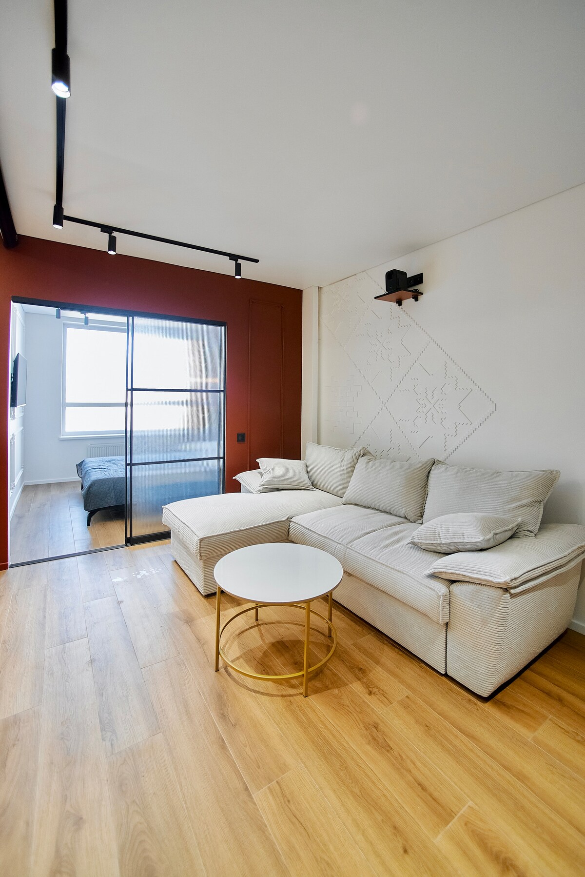 Acest apartament cu design deosebit este creat pentru o experiență inedită în Chișinău Dispune de un dormitor confortabil, cu garderobă, ideal pentru șederi scurte sau mai lungi. În zona de living se află o canapea confortabilă, perfectă pentru relaxare. Pentru un plus de confort, baia și antreul sunt prevăzute cu podele încălzite, oferind o atmosferă plăcută în orice sezon. Oaspeții beneficiază de loc privat de parcare în parcarea subterană, asigurând siguranță și liniște pentru automobil.