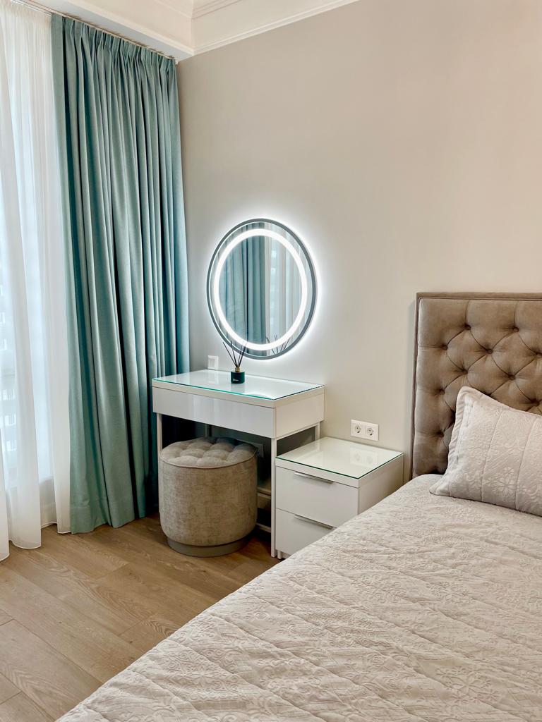 Удобная (новая) , светлая квартира , она полностью укомплектована (кондиционеры, стиральная машина , посудомоечная машина, кофе машина, тостер, белье , полотенца, посуда … автономное отопление, теплый пол. Также имеется отдельная гардеробная. Две комнаты раздельные. Вся инфраструктура в шаговой доступности. Панорамный вид из окон. Особенный вид открывается на ночной город, весь город как на ладони.
