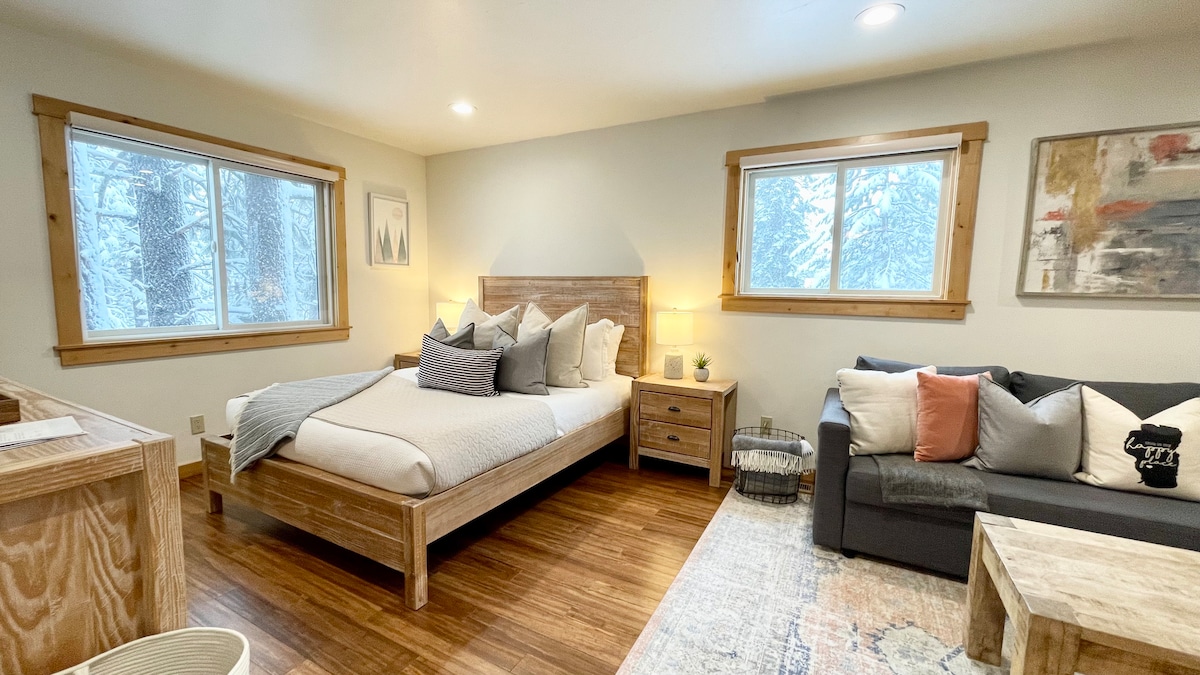 Welcome to Base Camp! Our cozy studio (308 SF) is located in the Tahoe Donner Lodge Condominiums. The Lodge HOA is less than 50 yards from the Tahoe Donner downhill ski resort - consistently voted as the best place to learn how to ski. Alder Creek Adventure Center (cross-country skiing, hiking, biking) is less than a mile away. A private parking lot is available for our guests. Please note that our condo is not appropriate for more than two guests, including children of any age.