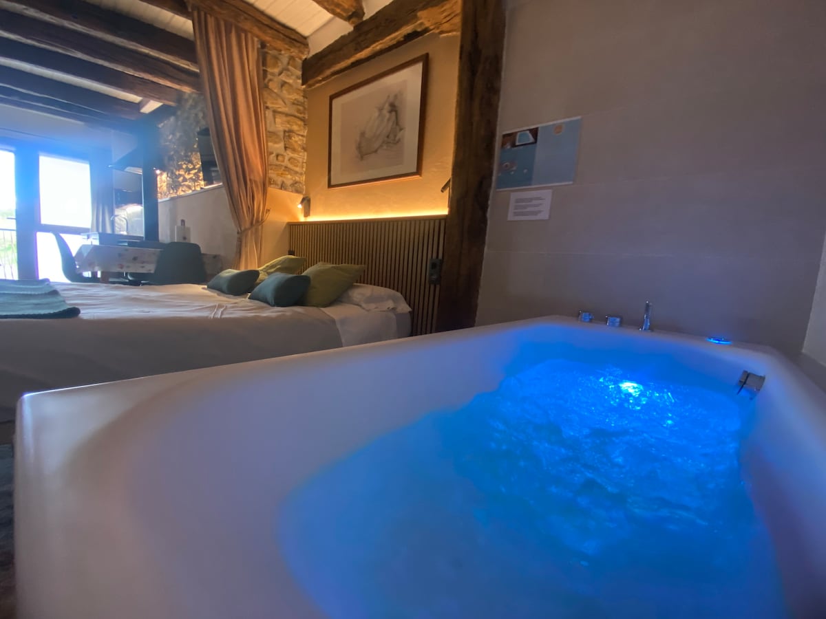 Ideal para parejas, es un Loft diáfano de 40m2 con un sofá cama que permite alojar cómodamente a un adulto o dos niños adicionales. Tiene una acogedora estufa de leña, una cocina y baño completo y una maravillosa bañera de hidromasaje para una experiencia de relax incomparable. A parte del balcón, tiene también una terraza privada con mesa de exterior y barbacoa, además de acceso a las zonas comunes del jardín con juegos de exterior y tumbonas. Nº de registro: XSS00818