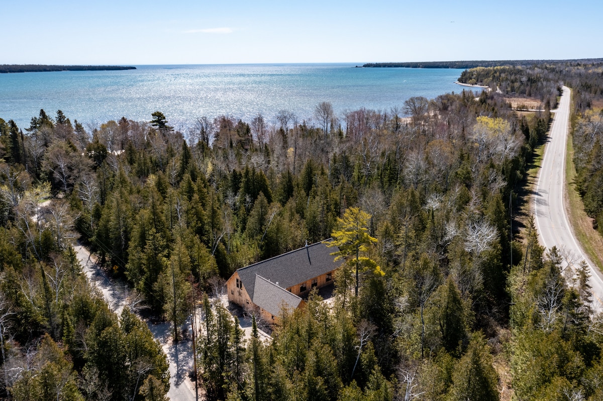 Beautiful 4 season, private 2 bedroom Knotty Pine Cottage located on the shores of Lake Michigan just 10 yards away from water in Sturgeon Bay, WI. 2 BR/1 bath cottage with beautiful stone, wood burning fireplace. A fully equipped kitchen with high bar dining which seats 8. Lots of living space with leather sectional and full size hide-away sofa sleeps 2, Main Guest Room 1 w/ queen log bed and Guest Room 2 with full size log bunk beds, Large screen tv, wifi and panoramic lake view.