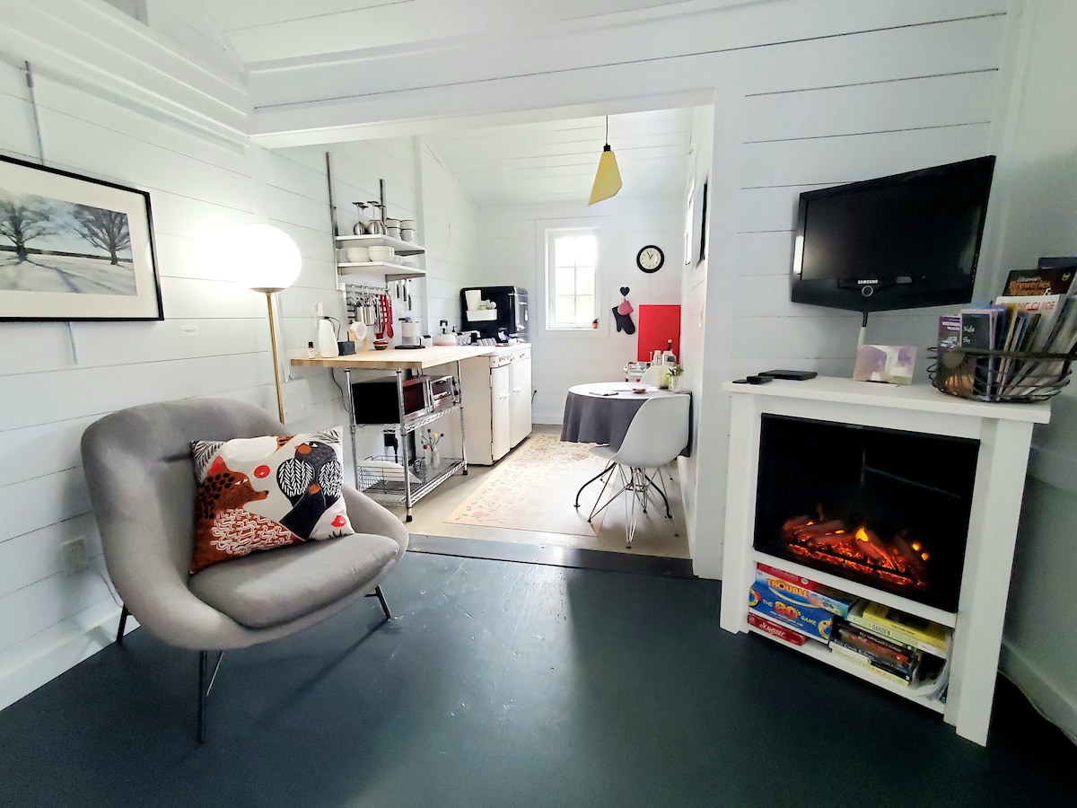 Grandview Farm Cottage is a circa 1920s newly renovated, 420 sq. ft. private guesthouse on the grounds of a 2.5 acre Door County property built in the late 1800s. Modern, industrial and repurposed style meets vintage farmhouse charm. Central location allows for quick drive or even a bike ride to either coast of the peninsula. Enjoy nature, wildlife, your own organically grown gardens, and dark starry night skies, while being only 3 miles to nightlife and shopping and beaches and parks.