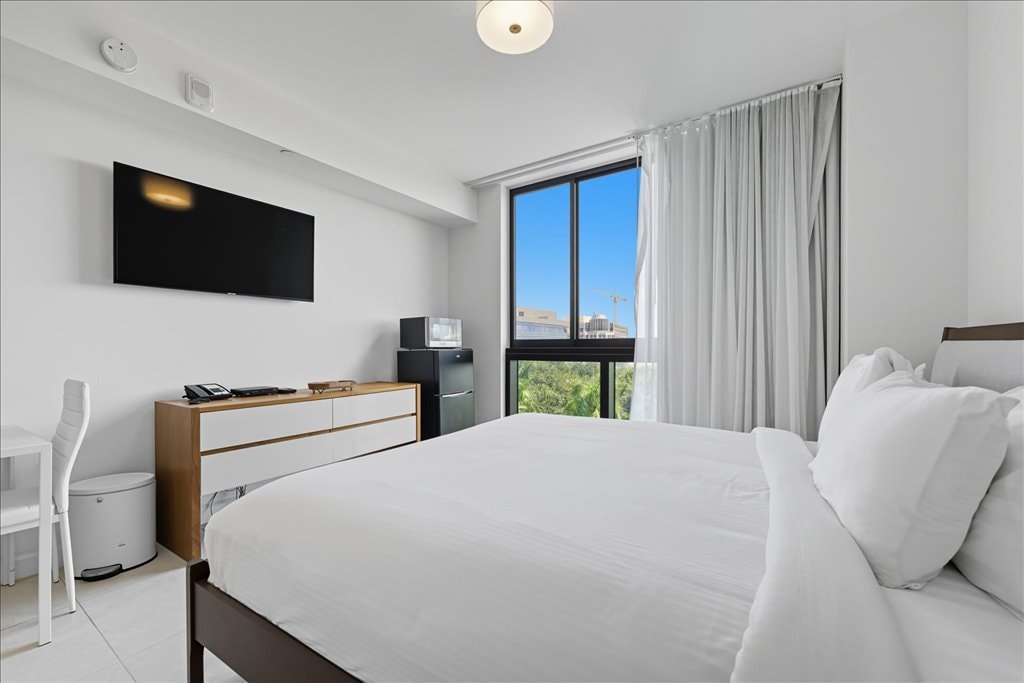 Super cool boutique hotel unit with a pool on Biscayne Boulevard, just a short drive to South Beach and the Design District. This unit offers a private and stylish accommodation for vacationers and business travelers. The room features a comfortable king-sized bed, hangers, a Smart TV and AC. This is a historic MiMo building, charming and nicely renovated. On site parking is available for just $15/day. Street Parking is unavailable. The unit is about 300 SQ/FT