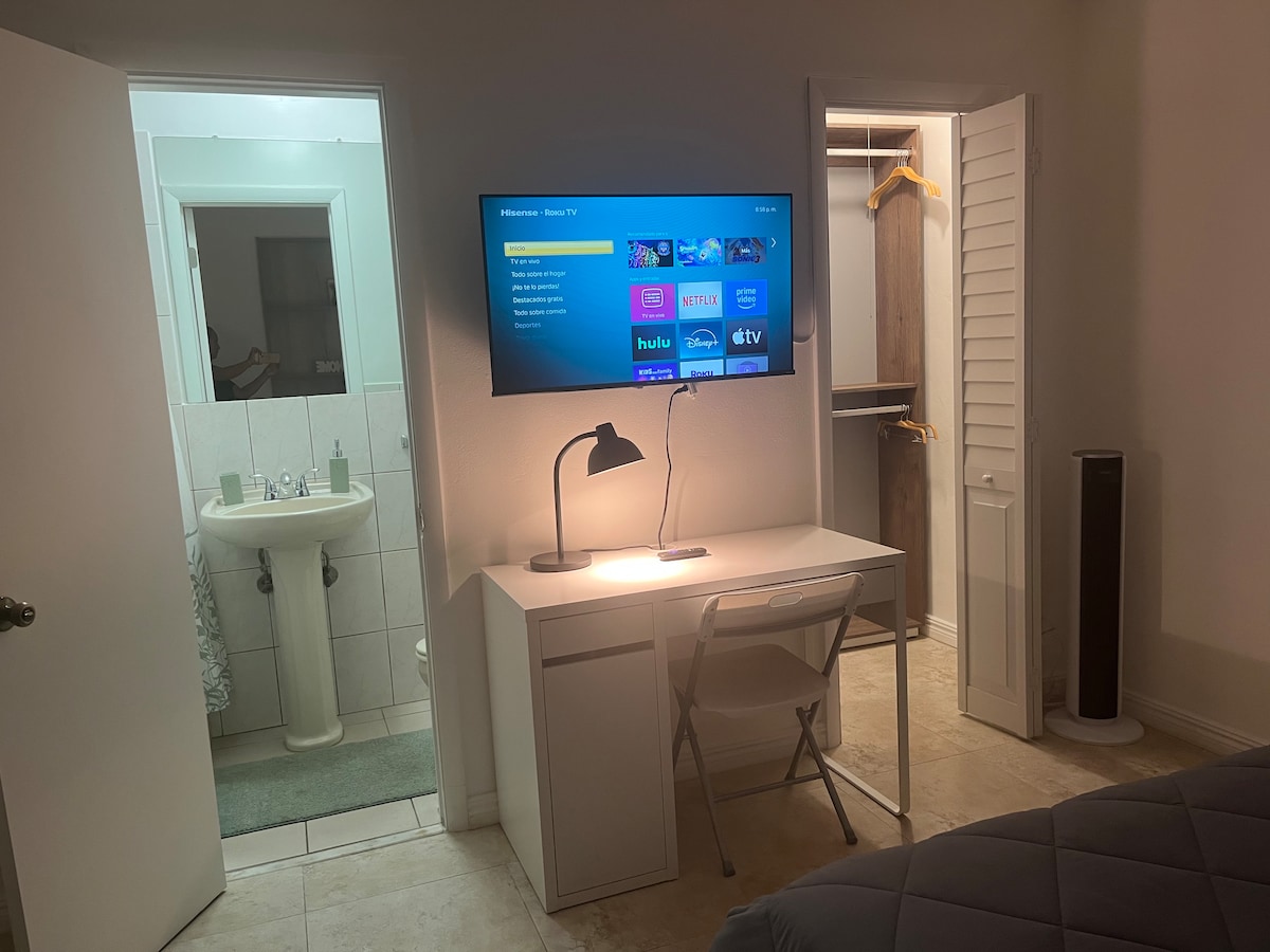 Habitación con baño privado,entrada independiente y estacionamiento para un carro (no tiene cocina).Estarás a 15 minutos de Aventura Mall, de la playa ,20 min de Wynwood y Midtown ,5 min de biscayne Blvd Donde tienes target,Walmart Ross y muchas más! Uber y lyft funcionan muy bien . Nosotros los anfitriones vivimos en la casa anexa a la habitación por lo que si necesitas algo en tu estadía no dudes en contactarnos. La habitación cuenta con nevera, microondas ,cafetera y calentador de agua.