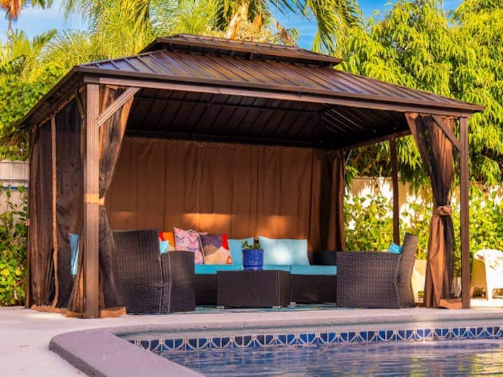 "This house was everything it seems and more!" - June, 2024, Brittany. Discover a stunning villa renovated in 2022! It features 4 spacious bedrooms, 2 stylish baths, and a bright open living area with a modern kitchen. Enjoy the outdoor dining area and gazebo for relaxing days. We can't wait to host you! ☆ Completely Renovated in 2022 ☆ Heated Pool and Gazebo ☆ Hollywood and Hallandale Beach - 15 minutes ☆ Spacious outdoor dining space with lights and fan We always available to assist!