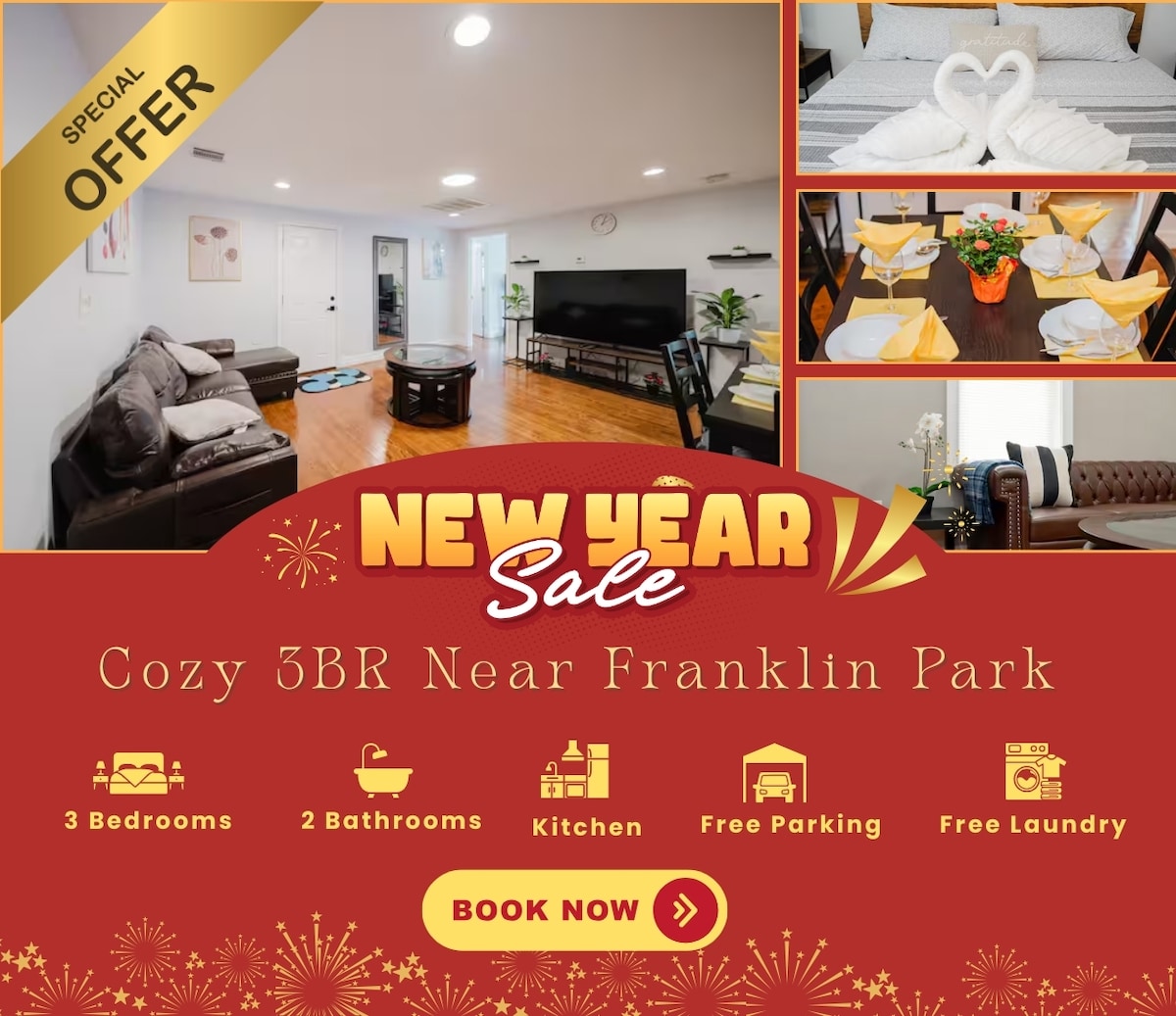 Spacious Luxury 3 BR, Spotless, W/D, Parking