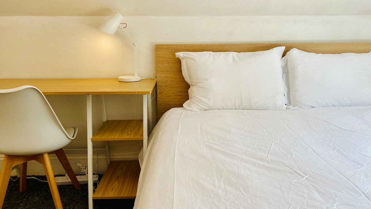 房间位于安静的车道下面的公寓内,配有标准双人床。