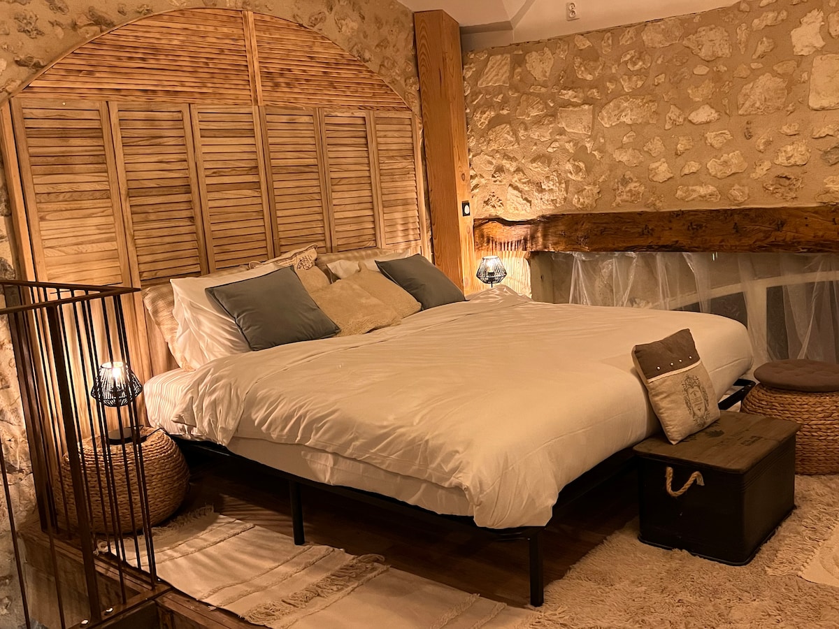 Venez profiter du calme et du charme de la pierre, dans notre maison riche d’histoire nous avons souhaitez vous offrir un lieu de détente et d apaisement. Idéalement situé aux portes de St Emilion, de l Entre deux mers, à 40mn de Bordeaux et 1h15 du bassin d Arcachon, offrez-vous un moment à deux loin du tumulte des grandes villes. Le grand jardin familial dispose d une piscine accessible à la belle saison et nos amis quadrupèdes sont les bienvenus. Au plaisir de vous recevoir