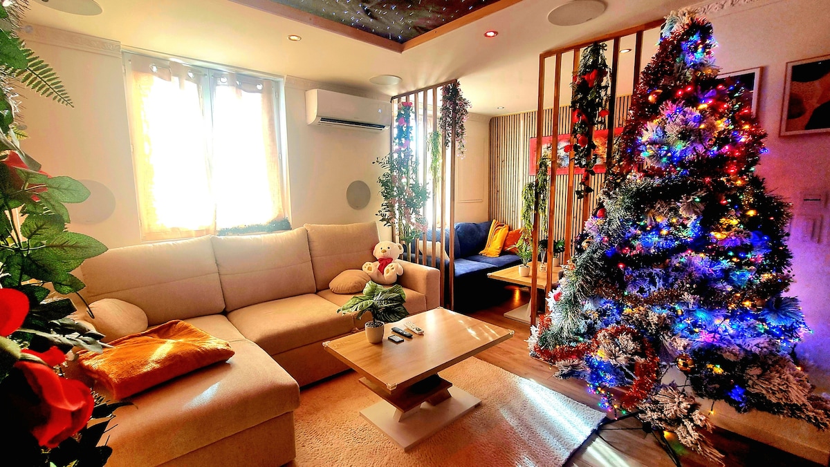 LES DÉCORATIONS DE NOËL SONT ARRIVÉES ! Jacuzzi Sauna Cinéma 110" et son Dolby Atmos 9.1 Ultra immersif + Canapé qui se transforme en lit. Bateau gonflable, rivière 200m Télescope Jeux de Société avec 2 Canapés Chambre + lit et Matelas + Oreillers Mémoire de forme. Coin TV 4K + Canapé Salon de Jardin Barbecue 3 Climatisations 2 TV, dont 1 en 65 pouces 4K Nintendo Switch PS5 Netflix Disney Apple TV Machine à laver Friteuse Four Se ressourcer. Vous êtes arrivés.