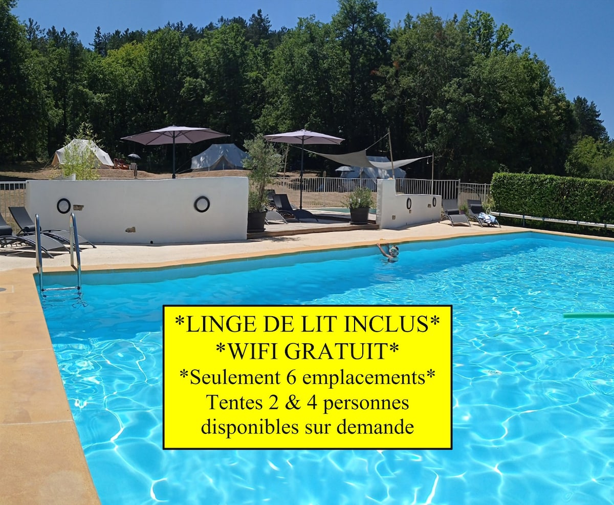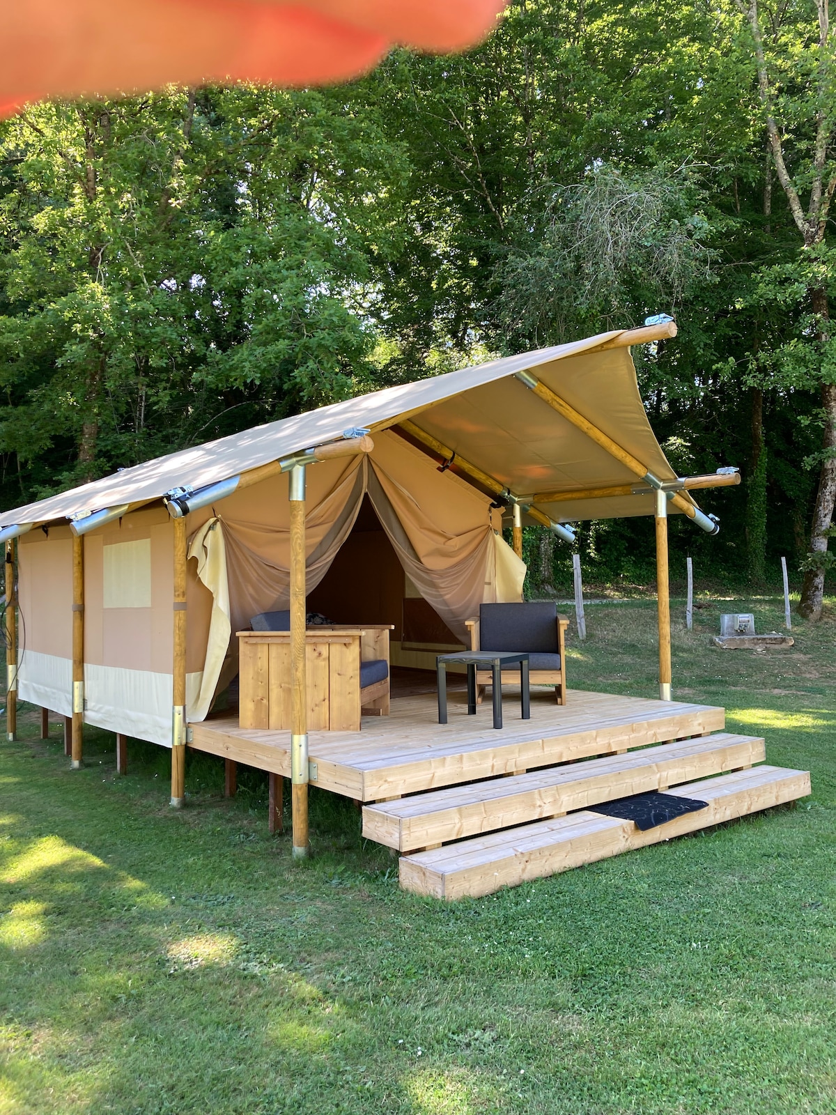 The family Emperor tent is huge & sleeps up to 4 people in comfort. Please note if we dont have availability on this tent, then please try one of the other 3 tents. They are all exactly the same. We are nestled in a beautiful valley with great views. We have a 12m x 6m pool & large sun deck & loungers. There's also a childrens pool. We have table tennis, badminton, boards games. There are plenty of places of visit such as Sarlat, Roque Gageac, Domme & many more. See you soon.
