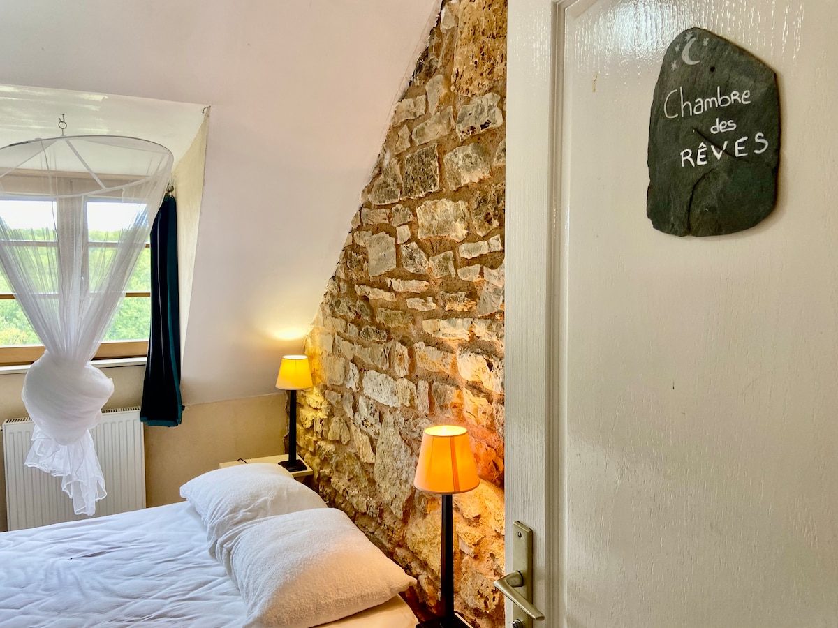Kamer op een sfeervolle locatie in een natuurstenen huis. De kamer heeft prof. airco en verwarming (2023) en muggengaas. U kunt overal een plekje zoeken op de binnenplaats of in de tuin met geweldig uitzicht. In ons café TIRAMISU kunt u op ieder moment een heerlijk drankje drinken. In juli en augustus hebben wij iedere zondagavond een muziek optreden. Of heerlijk zwemmen in de Dordogne op 5 min Grotte de Proumeyzac op 5 min; Prehistorische grotten 20 min; stad 10 min; Périgueux en Sarlat 40 min.