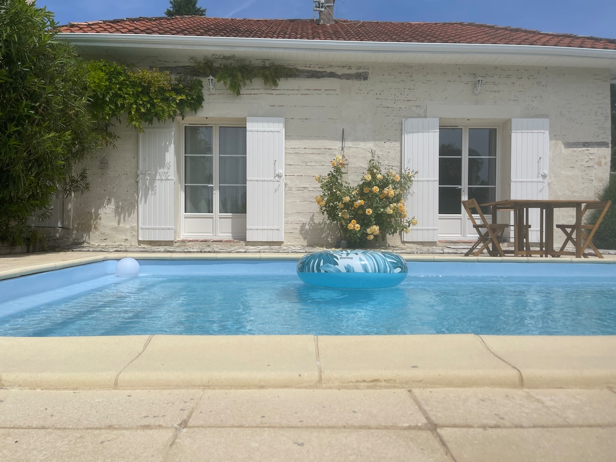 maisonnette calme, fraîche l’été grâce à l’épaisseur des murs et indépendante , mais à proximité des commerces , située sur la route des chemins de Compostelle , en bord de rivière , la Dordogne , à l'intersection de 3 départements Dordogne , Gironde et Lot et garonne . a mi parcours entre Montbazillac , Saint emilion et Duras , pays de vignobles et de chateaux. Convient pour un couple (chambre indépendante lit 140) et/ou couple avec un enfant ( banquette lit pour un enfant dans le salon)