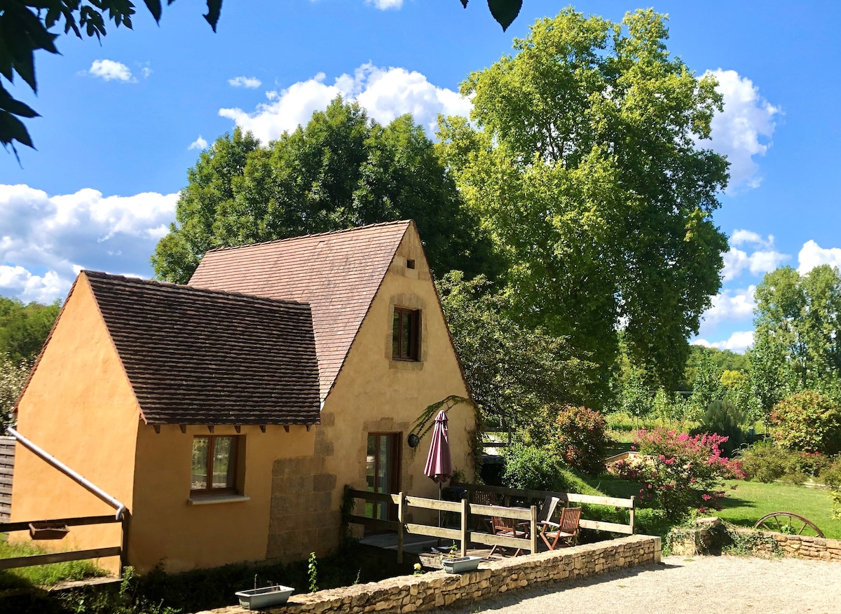 Beautiful cottage with beams and exposed stone. Parking and entrance into private courtyard garden with covered eating terrace and private jacuzzi. French doors into house. The kitchen is fully equipped, the lounge is very comfortable and warm with a pellet stove for winter The river vezere is only 50 mètres from your house, excellent for canoeing, wild swimming and picnicking 2 minutes by car to the stunning medieval village of Condat. 25 minutes to most of the Pre history Unesco sites.