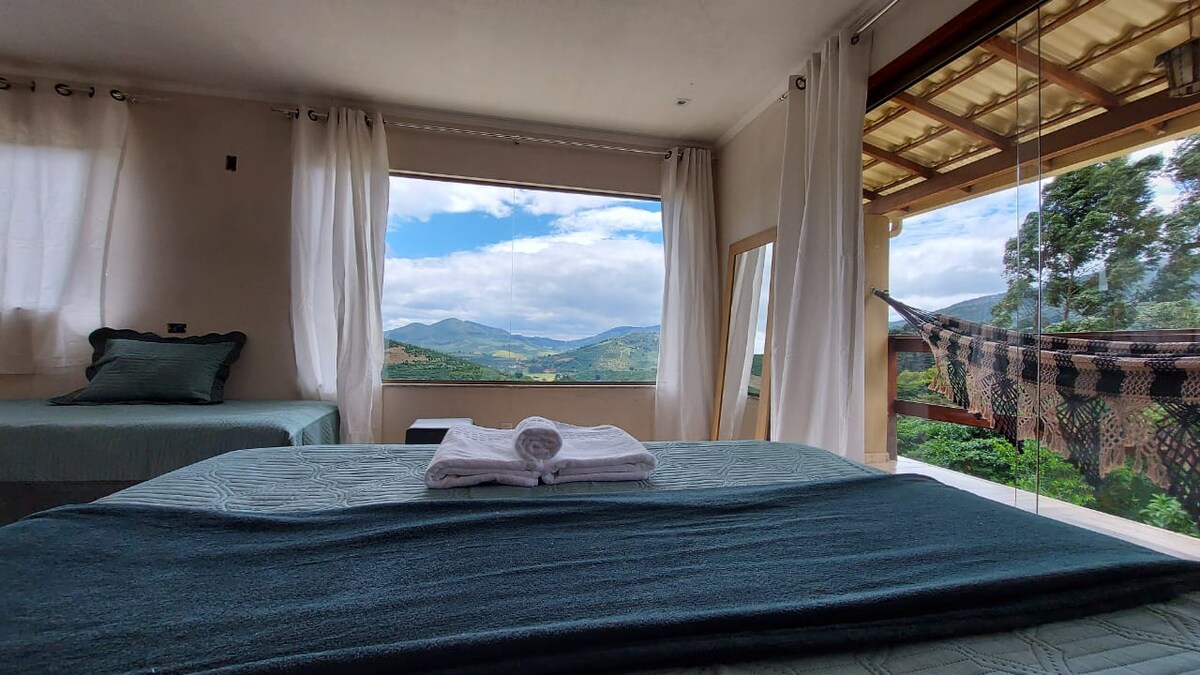 Esqueça de suas preocupações neste lugar espaçoso e tranquilo. Sítio com cachoeira e vista para montanha. 3 suítes confortáveis com demais dependências compartilhadas; sala e cozinha