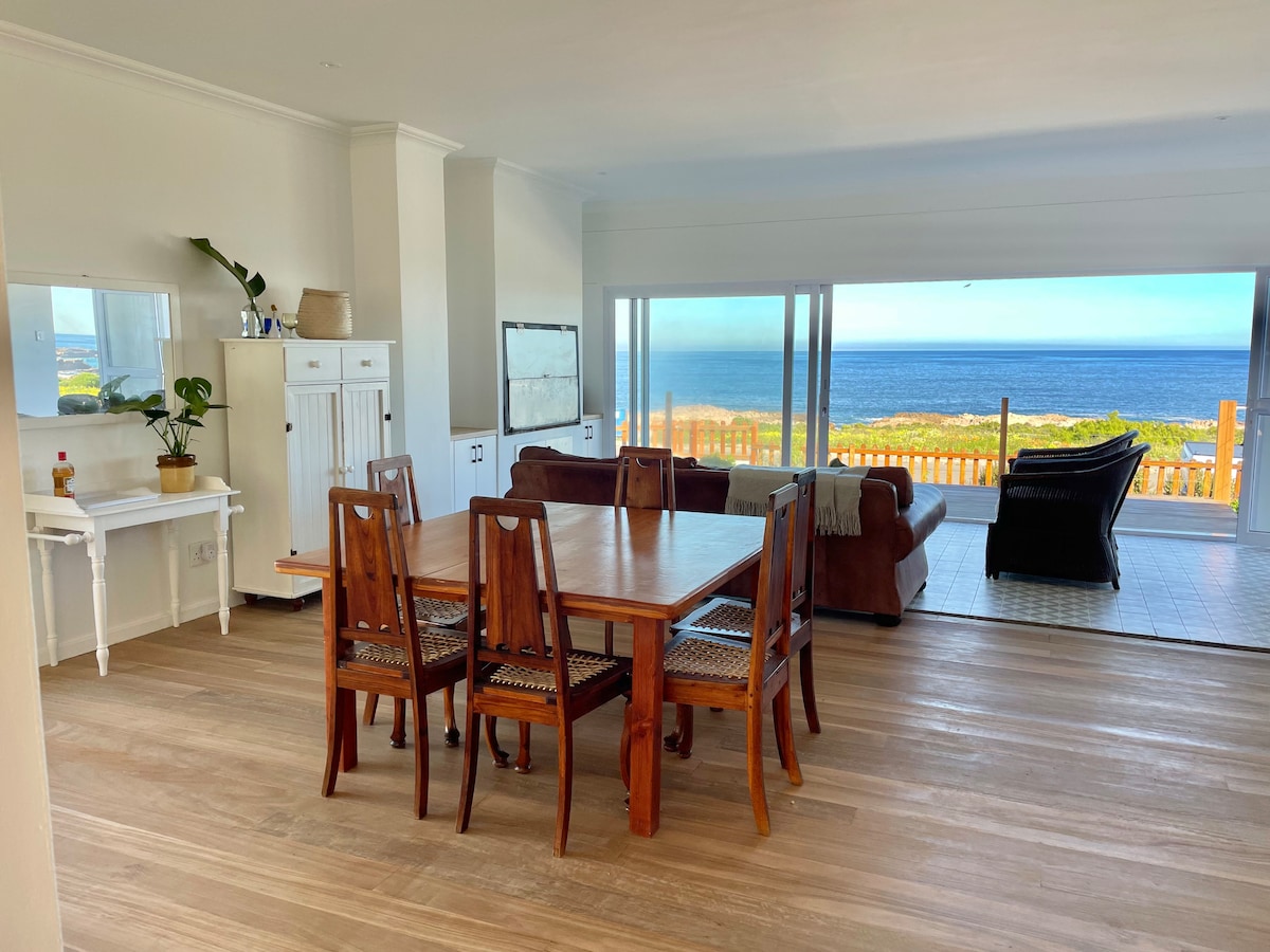 Relax with the whole family at this peaceful place to stay. Seaviews all around. Braai on the wooden deck and watch your children play on the beach. 3 Bedrooms, 1 bathroom, sleep 6. Dstv, free wi-fi, inside fireplace, microwave, gas top oven, dishwasher, fridge with freezer, nespresso machine (bring own pods). Inverter and battery backup for loadshedding.